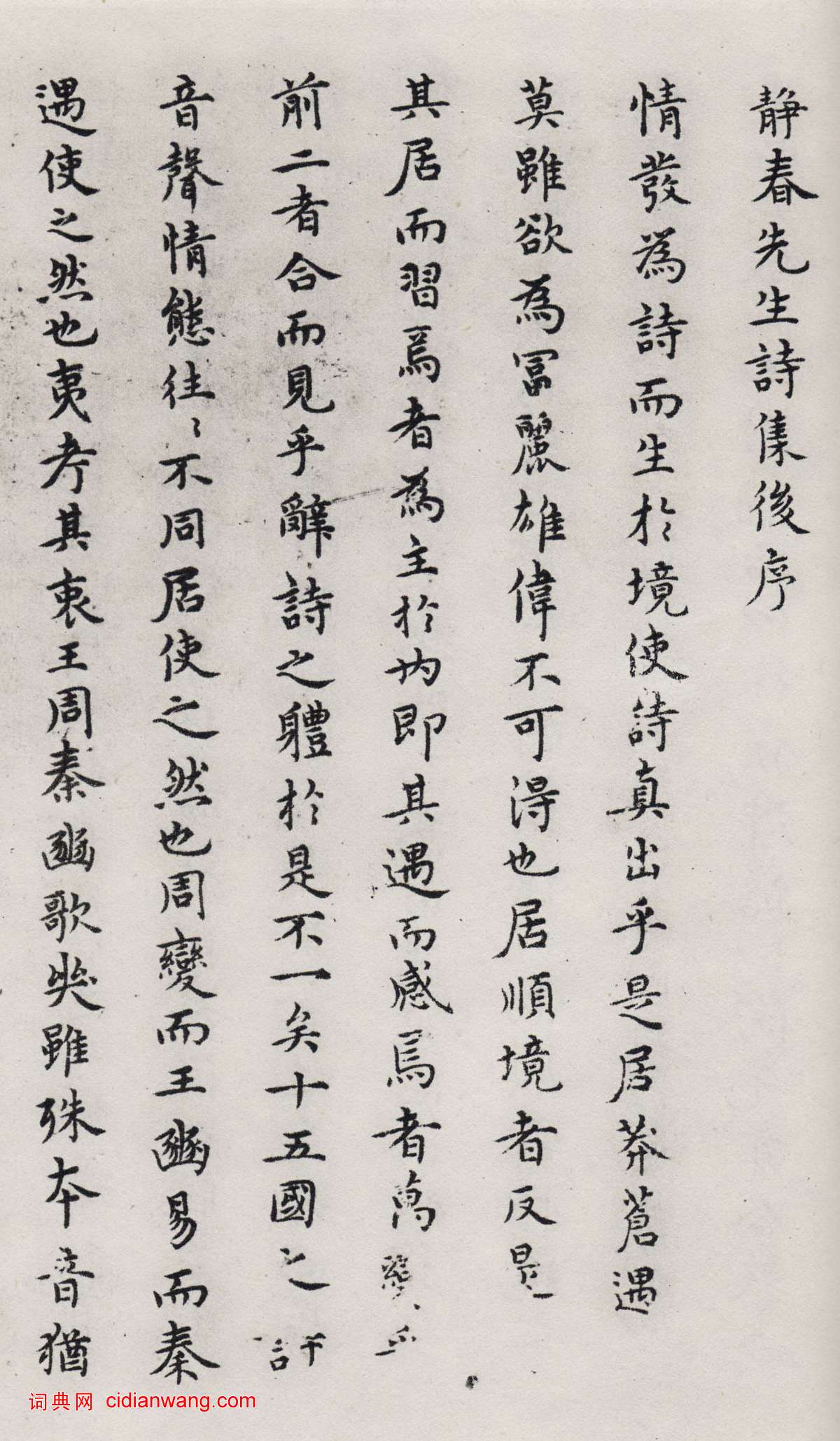 此序落款“至治元年三月既望”,即1321年。陳繹曾所書《靜春先生詩集後序》是元人書《靜春堂詩集》序卷中的一段。除陳繹曾,另有龔璛、陸文圭、楊載、湯彌昌等人作序,虞集、郭麟孫題跋,錢重鼎題詩以及黃溍撰寫《故靜春先生袁君墓志銘》。 靜春堂為袁易所居齋堂的名稱。《靜春堂詩集》為袁易次子袁仲長裒輯其父遺稿編成,並請父親的好友題序。 此序以小楷書成,勁利有致,用筆精勁細膩,遊刃有餘,筆到之處清雅飄逸。按陶宗儀《書史會要》記載:“陳繹曾善於書法,真草篆隸俱通習之,各得其法。”陳繹曾的墨跡傳世很少,此為其代表之作。