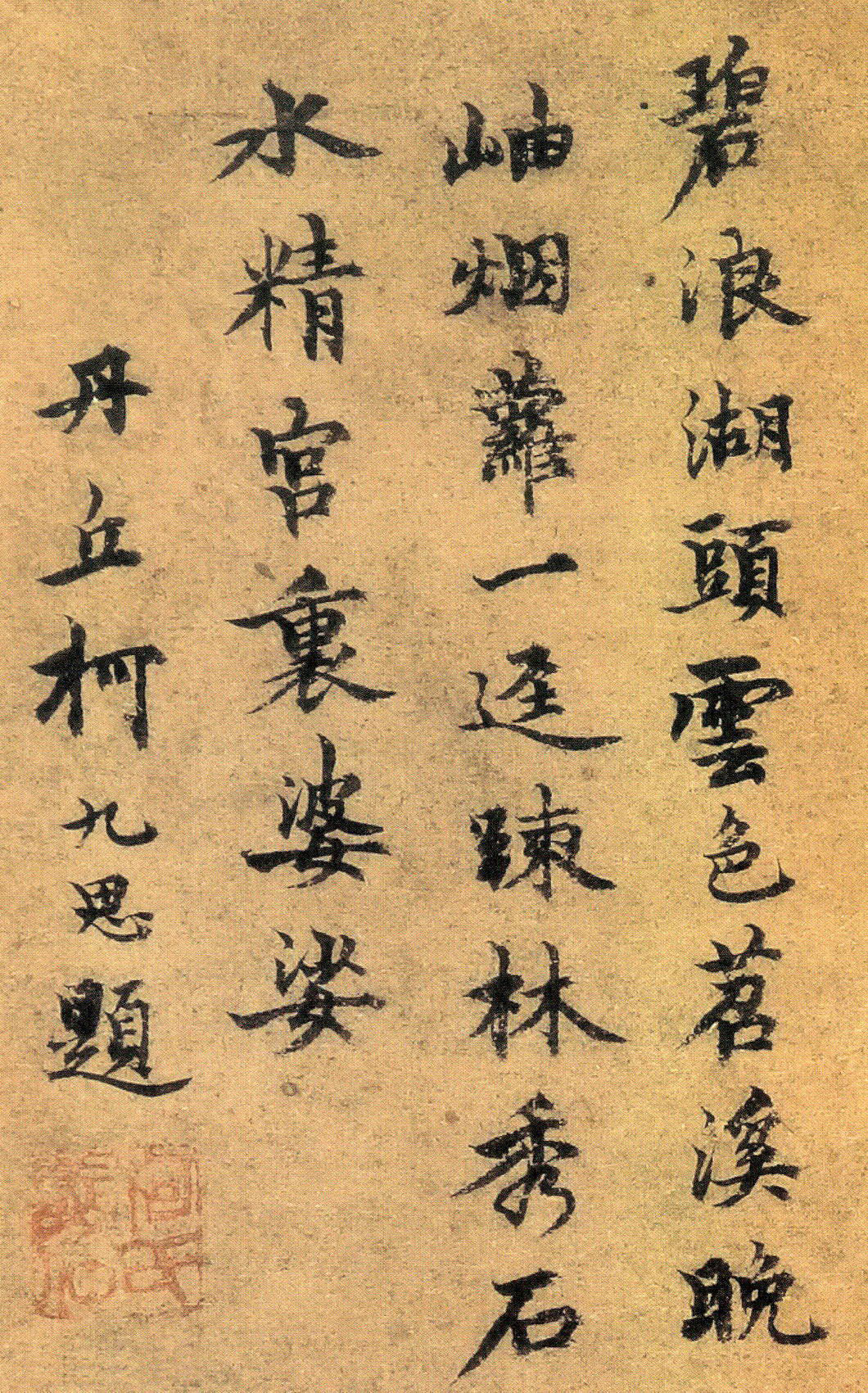 柯九思(1290—1343?),字敬仲,號丹丘生,別號五雲閣吏。台州仙居人(今屬浙江省)。父謙,曾任翰林國史檢閱、江浙儒學提舉,是元朝仙居較為顯揚的一個官宦。大德元年(1297),隨父遷居錢塘(今杭州)。延佑元年(1314)以父蔭補華亭縣尉,不就。自幼愛好書畫,聰穎絕倫,被視為神童。天曆元年(1328),柯九思遊學建康經人引薦結識了懷王圖帖睦爾。不久懷王繼位稱帝,是為文宗。柯九思被授予典瑞院都事(正七品,掌管瑞寶和禮用玉器)一職。天曆二年,元文宗仿宋閣學制,柯九思被遷升為奎章閣鑒書博士(正五品),專門負責宮廷所藏的金石書畫的鑑定。凡內府所藏古器物、書畫均命柯九思鑑定。經他鑑定收入內府的有王獻之《鴨頭丸》、虞世南臨《蘭亭序》、楊凝式《韭花貼》、蘇軾《寒食帖》等。皇帝特“賜牙章得通籍禁署”,與虞集、揭傒斯同為文宗時代奎章閣的代表人物。後因朝中官僚的嫉忌及文宗去世,柯九思束裝南歸,退居吳下,流寓松江(今屬上海市)。2015-10-10 19:46:49