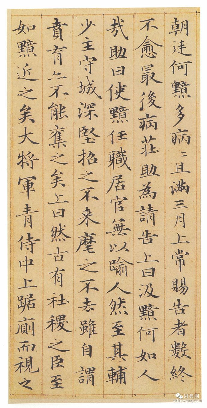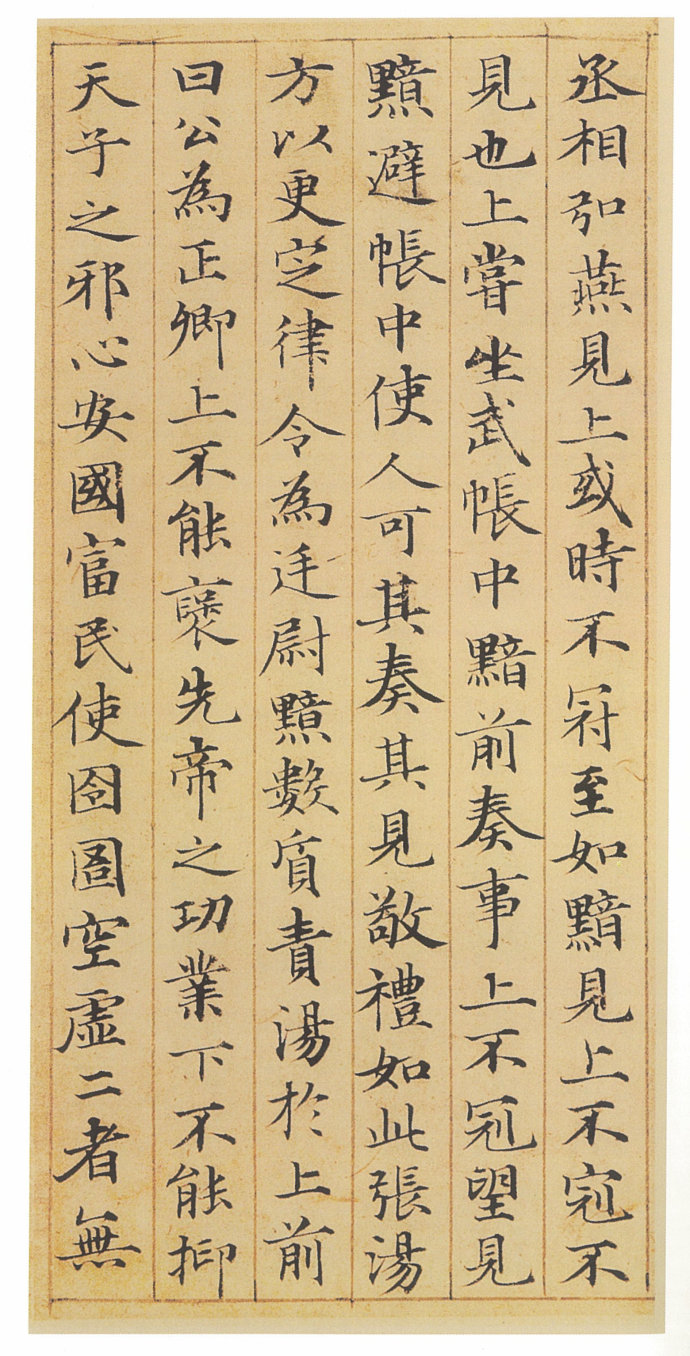 書法欣賞魏晉書法唐朝書法宋朝書法元朝書法明朝書法清朝書法近現代書法字典網>> 歷代書法>> 遼金元>> 趙孟頫小楷《漢汲黯傳》(4)正文 趙孟頫小楷《漢汲黯傳》(4)作者:趙孟頫 書體:小楷 首 頁 上一頁 1 2 3 4 5 6 7 8 9 10 下一頁 尾 頁趙孟頫的相關書法作品:趙孟頫·跋王羲之《時雪快晴帖》 趙孟頫小楷《高上大洞玉經》 趙孟頫·題《二羊圖》 趙孟頫《般若波羅蜜多心經》 趙孟頫行書 《煙江疊嶂圖》 趙孟頫行書《國賓山長帖卷》 趙孟頫《相州晝錦堂記》 趙孟頫草書《種松帖》 趙孟頫楷書《東銘》 相關文章:北魏楷書《吊比干碑》 (楷書)《魏孝文帝吊比干文碑》位於河南衛輝城北7.5公里比干墓祠。北魏太和十八年(494...趙之謙《隸書負舟絜宇五言聯》 (隸書)趙之謙《隸書負舟絜宇五言聯》紙本隸書 98.5×25.5cm 浙江省博物館藏 ...韋應物楷書《元苹墓誌》 (楷書)2007年8月,西安碑林博物館專家馬驥在友人處見到韋應物親自撰文並書寫的《夫人元...張祖翼篆書《能書善射五言聯》 (篆書)張祖翼《篆書能書善射五言聯》紙本篆書 133.5×23.7cm×2 安徽省博...他們的狂,成就了書法的狂【導讀】王獻之被謝安問:“你和你爸爸的書法,哪個更好?”王獻之說:“當然是我。”...徐渭《草書詩軸》 (草書)徐渭《草書詩軸》 紙本,行草書,縱123.4厘米,橫59厘米,上海博物館藏。【釋...北魏《張黑女墓誌》 (楷書)《張黑女墓誌》全稱《魏故南陽太守張玄墓誌》,有稱《張玄墓誌》。張玄字黑女,因避清...鄭燮《行書李白秋登宣城謝眺北樓詩軸》 (行書)鄭燮 《行書李白秋登宣城謝眺北樓詩軸》紙本行書 266×99.8cm 台北故宮...魏碑《王元祥造像》 (魏碑)北魏《王元祥造像》(整體)北魏《王元祥造像》,全稱《魏太和十八年北海王元祥為母子...鄧石如篆刻作品欣賞 (篆書)作為清代碑學書家巨擘,他的出現標誌著碑學派用毛筆在宣紙上書寫魏晉南北朝碑以至漢碑...