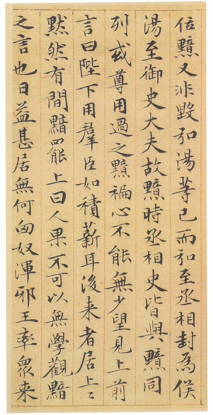 書法欣賞魏晉書法唐朝書法宋朝書法元朝書法明朝書法清朝書法近現代書法字典網>> 歷代書法>> 遼金元>> 趙孟頫小楷《漢汲黯傳》(7)正文 趙孟頫小楷《漢汲黯傳》(7)作者:趙孟頫 書體:小楷 首 頁 上一頁 3 4 5 6 7 8 9 10 11 12 下一頁 尾 頁趙孟頫的相關書法作品:趙孟頫行書《送瑛公住持隆教寺疏》 趙孟頫行書《千字文》 趙孟頫小楷《洛神賦》 趙孟頫行書《高峰和尚行狀》 趙孟頫《行書二贊二詩卷》 趙孟頫楷書《仇鍔墓碑銘》 趙孟頫行書《宗陽宮帖》 趙孟頫《洛神賦》 趙孟頫·跋蘇軾《治平帖》 相關文章:蔡襄《離都帖》 (行書)【釋文】襄啟。自離都至南京。長子勻感傷寒七日。遂不起此疾。南歸殊為榮幸。不意災禍...草書之美,任何欣賞草書草書,是為了書寫便捷而產生的一種書體。《說文解字》中說:“漢興有草書”。草書始於...吳大澂行書手札 (行書)吳大澂畫像吳大澂|初名大淳,為避清穆宗諱改名,字止敬,又字清卿,號恆軒,又別號白...萬上遴《行書論爭座位帖軸》 (行書)萬上遴《行書論爭座位帖軸》紙本行書 83×43.5cm 安徽省博物館藏釋文:以...順治行書《論桐文》 (行書)順治帝福臨,是清朝入關後的第一位皇帝。他是皇太極的第九子,生於崇德三年(1638...倪元璐行書《贈吉生昌化多山扇面》 (行書)倪元璐《贈吉生昌化多山扇面》 泥金紙本行書,18×55.2cm。北京故宮博物院...居節·題唐寅《溪山漁隱圖》 (行書)居節題唐寅《溪山漁隱圖》,行書。台北故宮博物院藏。釋文:染青烘萃濕未收。連山畫出...程邃《行書探梅詩軸》 (行書)程邃《行書探梅詩軸》紙本行書 86.3×46.9cm 上海博物館藏釋 文:野航...王羲之小楷·佛遺教經 (小楷)《佛遺教經》,全稱《佛垂般涅槃略說教誡經》,佛教經名,內容為釋迦牟尼臨終時對弟子...白蕉《書法十講》第四講 工具問題 (不詳)書法的工具,不消說,便是文房四寶了—-紙、墨、筆、硯。平常講到四寶,總是說湖筆、...