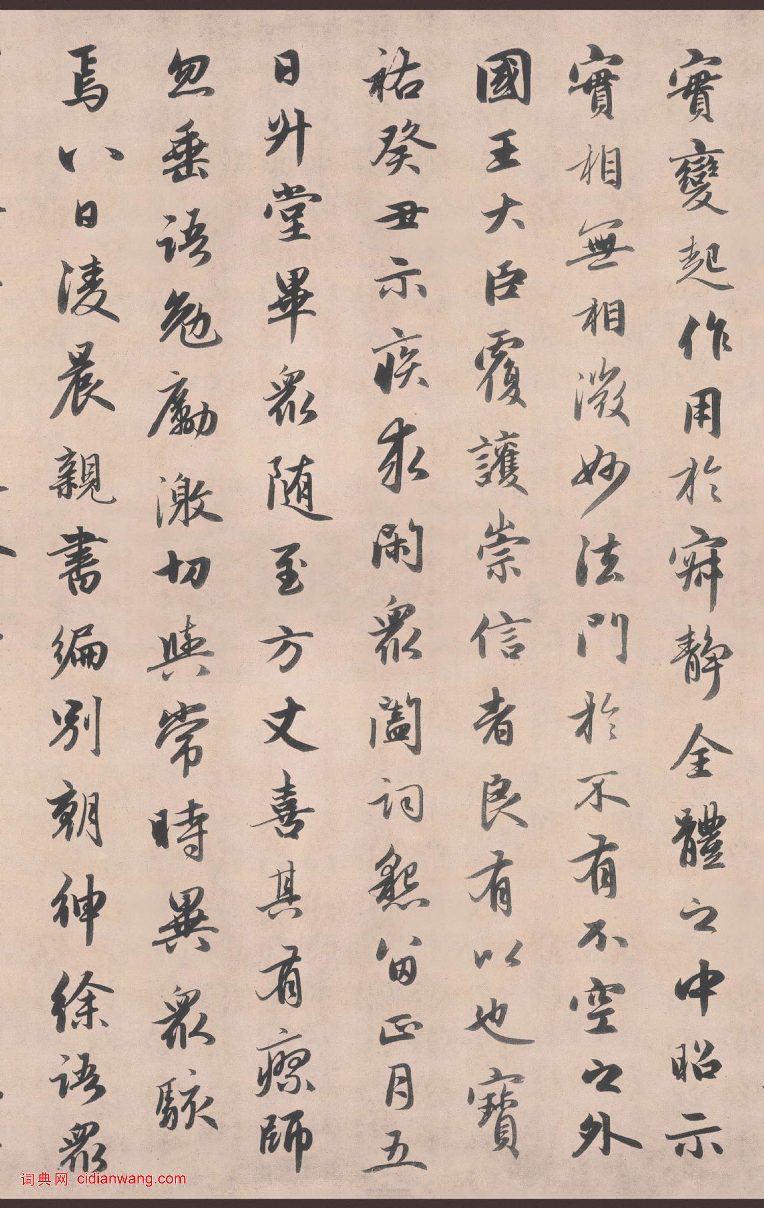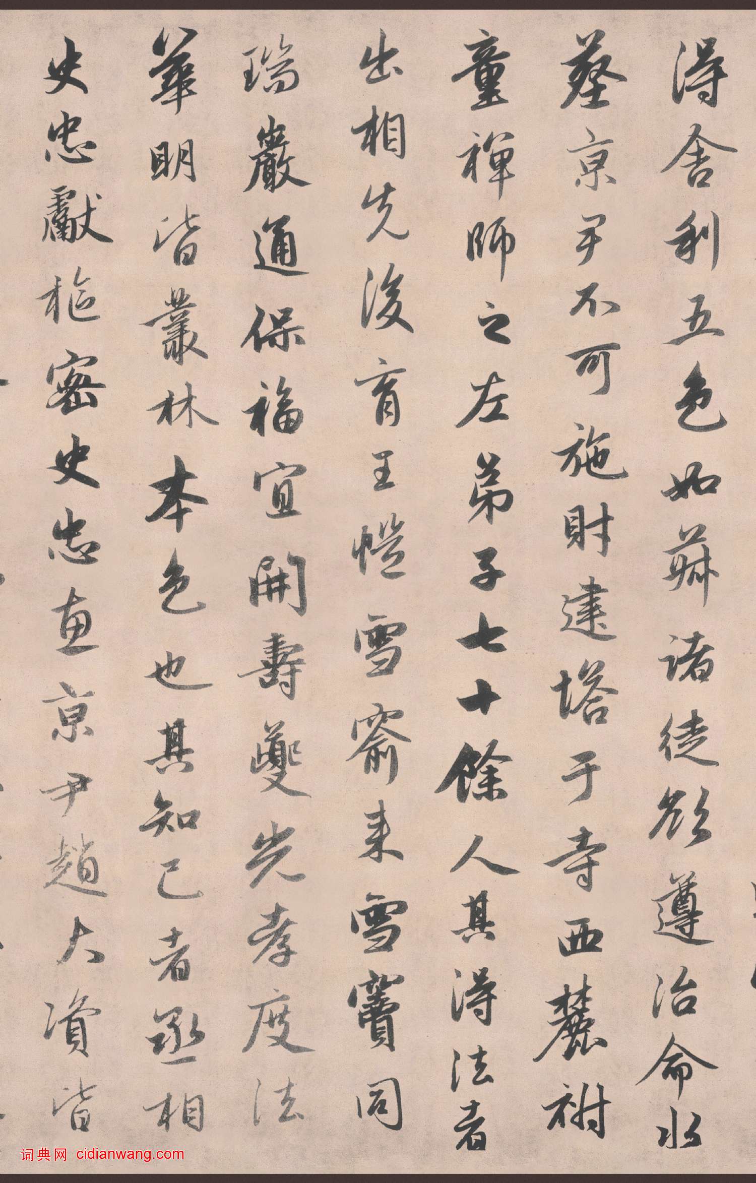 書法欣賞魏晉書法唐朝書法宋朝書法元朝書法明朝書法清朝書法近現代書法字典網>> 歷代書法>> 遼金元>> 趙孟頫《靈隱大川濟禪師塔銘》墨跡本(4)正文 趙孟頫《靈隱大川濟禪師塔銘》墨跡本(4)作者:趙孟頫 書體:行書 首 頁 上一頁 1 2 3 4 5 6 下一頁 尾 頁 全文2016-2-29 12:47:27 趙孟頫的相關書法作品:趙孟頫小楷《漢汲黯傳》 趙孟頫題《疏林秀石圖》 趙孟頫行書《般若波羅蜜多心經》冊頁,附題跋 趙孟頫的手札欣賞 趙孟頫真書間架結構九十二法 趙孟頫行書《過蒙帖》 趙孟頫行書跋《韓滉五牛圖卷》 趙孟頫·心經冊頁 趙孟頫行書《萬年歡曲》 相關文章:元好問跋米芾《虹縣詩卷》 (行書)元好問 跋米芾《虹縣詩卷》 帖 紙本,行書, 日本東京國立博物館藏。釋文:束坡...沈曾植《楷書北窗東海七言聯》 (楷書)沈曾植《楷書北窗東海七言聯》紙本楷書 132.5×31.5cm×2 浙江省博...張穀行楷《七言絕句三首》 (行楷)張穀《七言絕句三首》 紙本行楷書 23.1×27.4cm 台北故宮博物院藏釋文...吳琚行書《識語並焦山題名》 (行書)吳琚《識語並焦山題名》紙本行書 32.8×44.9cm 台北故宮博物院藏 釋文...楊慎·石馬泉詩 (行楷)楊慎《石馬泉詩》,行楷,冷金箋本,縱21.5厘米,橫47.2厘米,北京故宮博物院...索靖·出師頌 (草書)【釋文】茫茫上天 降祚為漢 作基開業 人神攸贊 五曜宵映 素靈夜嘆 皇運未授 萬...沙孟海《篆書和平奮鬥直幅》 (篆書)沙孟海《篆書和平奮鬥直幅》 91.5×31.5cm 1987年作 浙江省博物館...李陽冰篆書《城隍廟碑》 (篆書)李陽冰《城隍廟碑》 又稱《縉雲縣城隍廟記碑》,唐乾元二年(759)刻,李陽冰為本...黃庭堅·惟清道人帖 (行書)【釋文】惟清道人本貴部人,其操行智識,今江西叢林中未見其匹亞。昨以天覺堅欲以觀音...東漢隸書《延光殘碑》 (隸書)延光殘碑又稱“都官是吾碑”,東漢延光四年刻,康熙六十年(1721)山東諸城超然台...