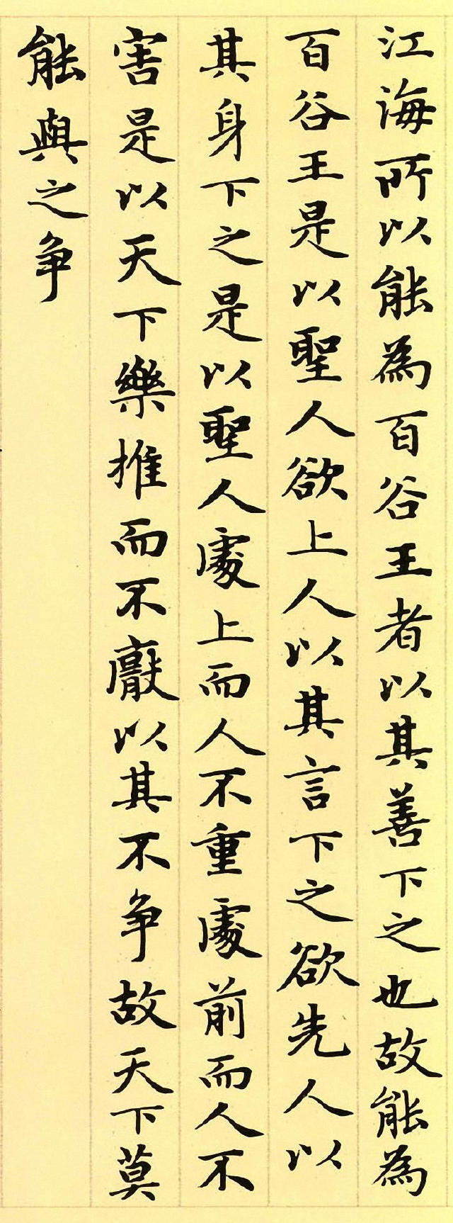 書法欣賞魏晉書法唐朝書法宋朝書法元朝書法明朝書法清朝書法近現代書法字典網>> 歷代書法>> 遼金元>> 趙孟頫小楷《道德經》高清版(29)正文 趙孟頫小楷《道德經》高清版(29)作者:趙孟頫 書體:小楷 首 頁 上一頁 25 26 27 28 29 30 31 32 33 34 下一頁 尾 頁趙孟頫的相關書法作品:趙孟頫行書《絕交書戲鴻堂法書》 趙孟頫行書 《煙江疊嶂圖》 趙孟頫《相州晝錦堂記》 趙孟頫·跋蘇軾《治平帖》 趙孟頫行書跋《韓滉五牛圖卷》 趙孟頫行楷《唐狄梁公碑》 趙孟頫·題《二羊圖》 趙孟頫行楷跋楊凝式《夏熱帖》 趙孟頫行書《山上帖》 相關文章:謝萬行書《謝萬帖》 (行書)謝萬帖(選自大觀帖)釋文:七月十日萬告朗等:便流火感傷,兼切不自勝,柰何柰何!轉...民國四公子袁克文書法 (行楷)今天看的這位是和張學良、張伯駒、溥侗並稱民國四公子的袁克文。袁克文(1889-1...東漢《王平君闕銘》 (隸書)東漢 王平君闕銘 闕高220cm 寬57cm 四川成都市出土蘇軾行書《前赤壁賦》 (行書)《赤壁賦》是北宋文學家蘇軾所寫的散文,分為《前赤壁賦》和《後赤壁賦》。其中《前赤...趙孟頫真書間架結構九十二法 (楷書)《趙孟頫真書九十二法》又名《趙孟頫楷書九十二法》。此本對趙孟頫楷書中的文字排序進...章炳麟篆書《偶逢閒與七言聯》 (篆書)章炳麟《篆書偶逢閒與七言聯》 168×36cm 正文:偶逢遊客同傾酒 閒與...趙時棡篆書《詩經七月》 (篆書)趙時棡篆書《詩經.七月》 刊於《書法》雜誌1986.3 釋文: 七月...石濤《楷隸行三體雜錄卷》 (行書)石濤《楷隸行三體雜錄卷》紙本 93×24cm 台灣藏 ...王易簡小楷《跋保母帖》 (小楷)(宋)王易簡小楷《跋保母帖》。故宮博物院藏。王易簡(約公元1279年前後在世),...莫友芝《篆書江湖草木七言聯》 (篆書)莫友芝《篆書江湖草木七言聯》 紙本篆書 159×26.5cm×2 貴州省博物...