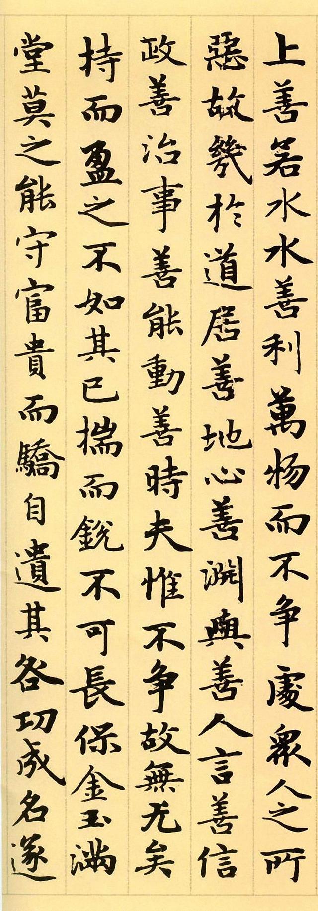 書法欣賞魏晉書法唐朝書法宋朝書法元朝書法明朝書法清朝書法近現代書法字典網>> 歷代書法>> 遼金元>> 趙孟頫小楷《道德經》高清版(4)正文 趙孟頫小楷《道德經》高清版(4)作者:趙孟頫 書體:小楷 首 頁 上一頁 1 2 3 4 5 6 7 8 9 10 下一頁 尾 頁趙孟頫的相關書法作品:趙孟頫楷書《膽巴碑》 趙孟頫《雪岩和尚拄杖歌卷》 趙孟頫楷書《玄妙觀重修三門記》 趙孟頫草書《種松帖》 趙孟頫《江南淨土詞十二首》 趙孟頫·題《二羊圖》 趙孟頫《閒居賦》 趙孟頫小楷《洛神賦》 趙孟頫·後赤壁賦 相關文章:宋人書法真不簡單 (行草)宋代書法,承唐繼晉,上技五代,開創了一代新風。宋太宗時留意書法翰墨,購摹古先帝王...成親王·雜體詩冊 (小楷)成親王,清朝皇族爵位,愛新覺羅·永瑆(1752-1823)是乾隆帝的第十一個兒...范成大行草《中流一壺帖》 (行草)范成大《中流一壺帖》紙本 行草書 31.8×42.4cm 北京故宮博物院藏釋...沈周·行書詩卷 (行書)釋文:野水浮雲盪夕光,仙舟兩宿古溪傍,清篇感舊頻翻韻,濁酒謀鄰載過牆,燭跋不知春...柳公權行書《紫絲靸帖》 (行書)柳公權《紫絲靸帖》(又稱《年衰帖》)、《蘭亭帖》 行書【釋文】:公權年衰才劣,...王鳳靈·跋趙令穰《湖莊清夏圖卷》 (行書)王鳳靈跋趙令穰《湖莊清夏圖卷》,行書,縱19.1cm。波士頓美術館藏。曾國藩行書《復曾國荃、曾國葆書札》 (行書)曾國藩《復曾國荃、曾國葆書札》 湖南省博物館藏釋文:沅、季弟左右:十二早接弟賀信...文徵明行書《為沈天民作滸溪草堂圖》 (行書)明代文徵明高清書法欣賞《為沈天民作滸溪草堂圖》,乙未臘月,文徵明66歲寫,遼寧省...馮文蔚小楷臨《九成宮》 (小楷)用硬筆臨摹傳統的毛筆書法字帖,很少有合適的選擇。很多書友擅長硬筆書法,又想向歐楷...北魏《元懷墓誌》 (楷書)元懷墓誌,北魏熙平二年(517)八月刻,1925年河南洛陽張羊村出土,原石現藏開...