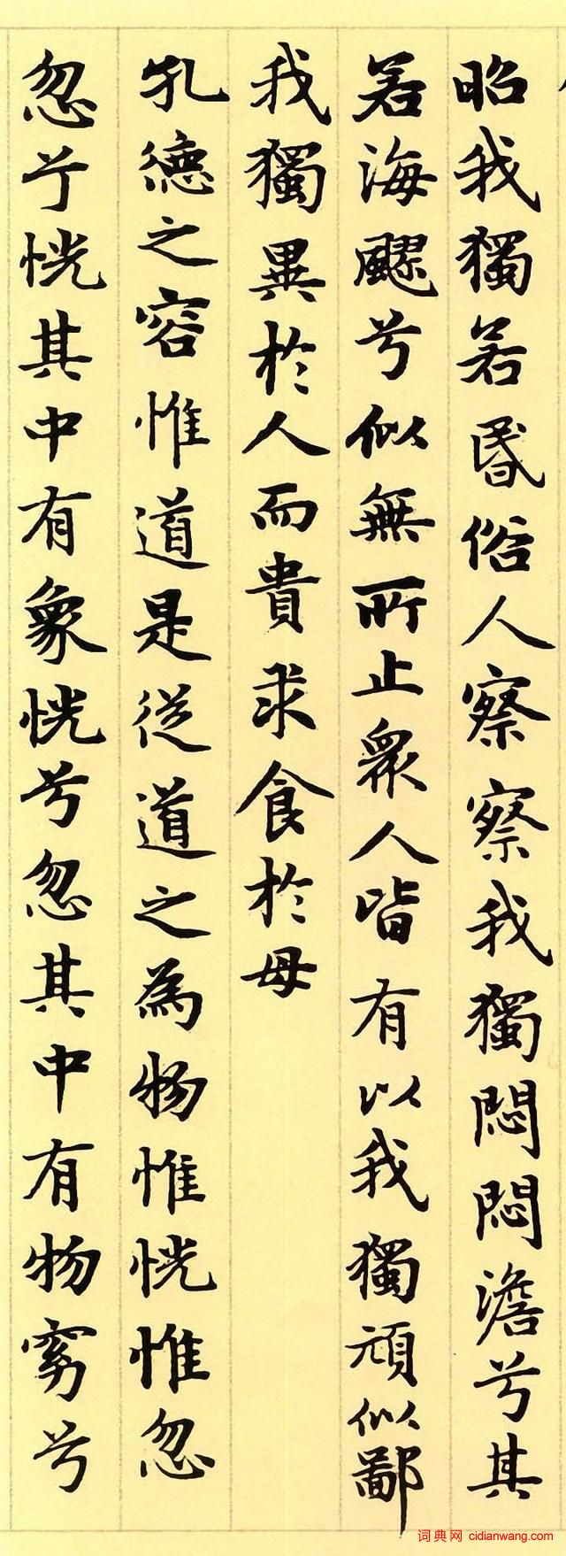 書法欣賞魏晉書法唐朝書法宋朝書法元朝書法明朝書法清朝書法近現代書法字典網>> 歷代書法>> 遼金元>> 趙孟頫小楷《道德經》高清版(9)正文 趙孟頫小楷《道德經》高清版(9)作者:趙孟頫 書體:小楷 首 頁 上一頁 5 6 7 8 9 10 11 12 13 14 下一頁 尾 頁趙孟頫的相關書法作品:趙孟頫《相州晝錦堂記》 趙孟頫行草《寄題杜尊師白雲庵瓊秀亭》二首 趙孟頫行書跋《韓滉五牛圖卷》 趙孟頫《妙嚴寺記》 2017年趙孟頫集字春聯 趙孟頫楷書《仇鍔墓碑銘》 趙孟頫行書《秋興賦》 趙孟頫《真草千字文》 趙孟頫行書 《煙江疊嶂圖》 相關文章:黃道周草書《答孫伯觀疏林摧倦翮詩軸》 (草書)黃道周《答孫伯觀疏林摧倦翮詩軸》紙本草書 177.5×49cm 崇禎十五年(1...乾隆小楷臨《王羲之樂毅論》 (小楷)《樂毅論》是三國時期魏夏侯玄(泰初)撰寫的一篇文章,文中論述的是戰國時代燕國名將...“江西才子”曾棨《贈王孟安詞》 (行書)聽過“江南四大才子”,“江西才子”倒是第一次聽說!書友們就好奇了,江西才子是誰?...陳師曾《楷書臨王饒安碑軸》 (楷書)陳師曾《楷書臨王饒安碑軸》 134×34cm 紙本 上海博物館藏釋...吳熙載篆書《張華勵志詩四屏》軸 (篆書)吳熙載《張華勵志詩四屏》軸 紙本,118.2×37.5cm×4 日本東京國...書法該怎么讀帖?讀貼,拿著古代碑帖讀。有人說“看”帖和“讀”帖一樣,其實完全不然,一字之差,卻相...趙之琛篆書《摹古軸》 (篆書)趙之琛《篆書摹古軸》紙本篆書 131.5×60.5cm 南京博物院藏釋文:唯三...曾熙篆書《百歲一德八言聯》 (篆書)曾熙《篆書百歲一德八言聯》紙本篆書 168×38cm×2釋文:百歲之人古頌上...司馬光·洛陽耆英會序 (楷書)北宋 司馬光《洛陽耆英會序》,楷書。吳昌碩《篆書鳴禽朝花八言聯》 (篆書)吳昌碩《篆書鳴禽朝花八言聯》 202×42cm×2 1918年 浙江美術館藏...