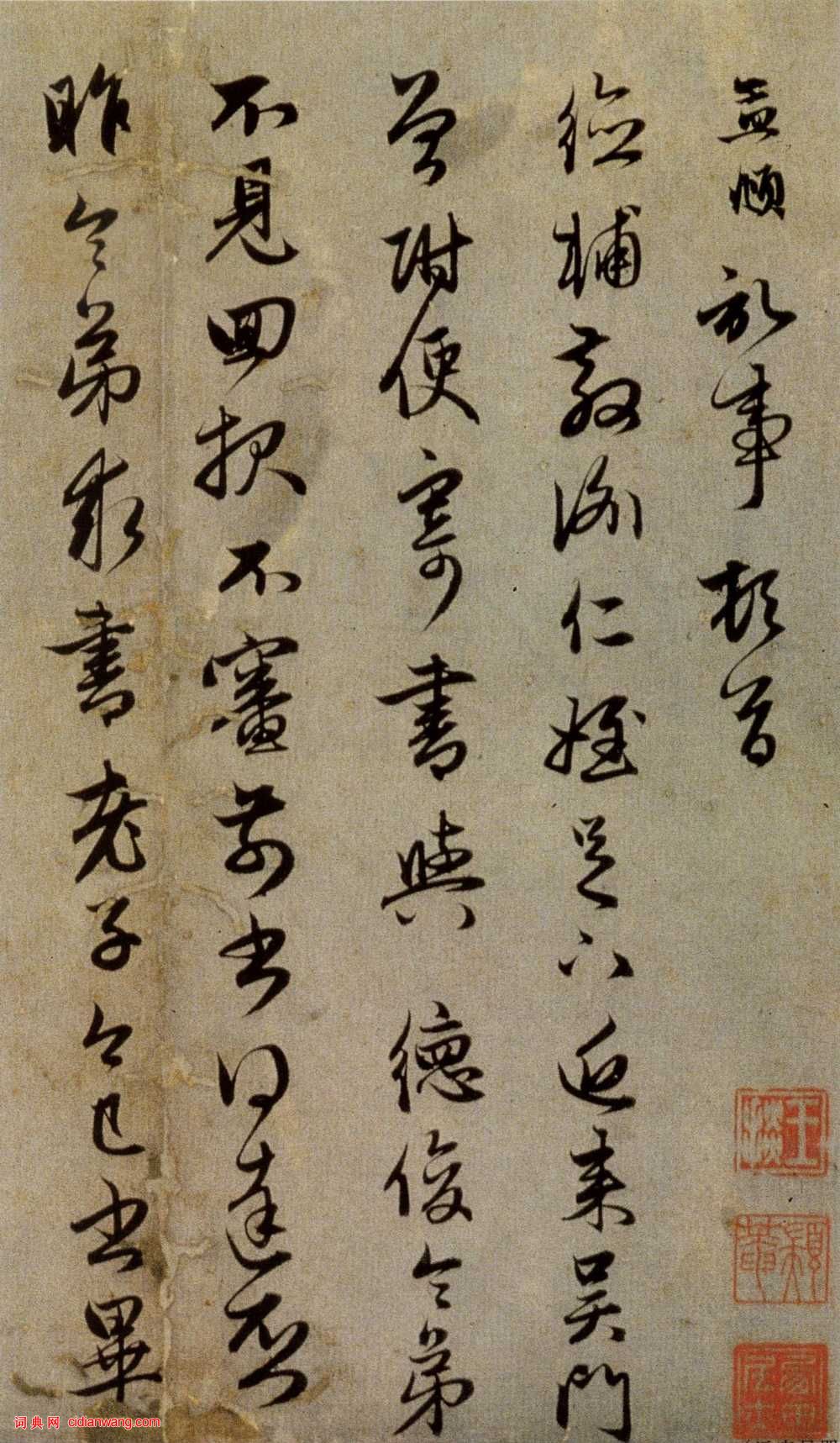 趙孟頫 《近來吳門帖》紙本,行書,縱28.4cm,橫49.5cm。北京故宮博物院藏。此帖是寫給段德輔教諭的書札。