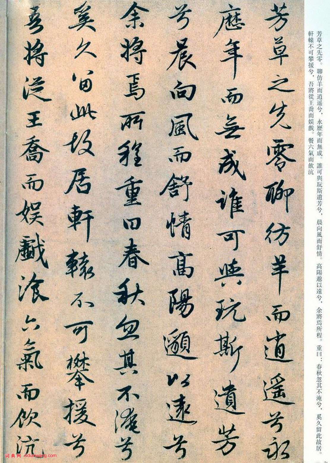 書法欣賞魏晉書法唐朝書法宋朝書法元朝書法明朝書法清朝書法近現代書法字典網>> 歷代書法>> 遼金元>> 趙孟頫行書《遠遊篇》(3)正文 趙孟頫行書《遠遊篇》(3)作者:趙孟頫 書體:行書 首 頁 上一頁 1 2 3 4 5 6 7 8 下一頁 尾 頁趙孟頫的相關書法作品:趙孟頫行書集字《靜夜思》 趙孟頫小楷《道德經》高清版 趙孟頫行書《送瑛公住持隆教寺疏》 趙孟頫·跋王羲之《時雪快晴帖》 趙孟頫《真草千字文》 趙孟頫行書《洛神賦》 趙孟頫行書《違遠帖》 趙孟頫行書《秋興賦》 趙孟頫《相州晝錦堂記》 相關文章:北魏楷書《穆亮墓誌》 (楷書)魏碑的風格大致可以分為兩大類:其一為雄健渾厚、豪邁奇宕一路,諸如《龍門二十品》、...尤袤·跋歐陽修《集古錄跋》 (行書)【釋文】卷有米襄陽題。尤可寶玩。楊統碑跋。歎其名之磨滅。蓋公偶未考尒。統以建寧元...釋擔當《草書七絕詩軸》 (草書)釋擔當《草書七絕詩軸》紙本草書釋文:村遠人疏路又歧,怯寒全在小春時。不知煙柳緣何...祝允明《草書杜甫秋興詩》 (草書)【釋文】昆明池水漢時功,武帝旌旗在眼中。織女機絲虛夜月,石鯨鱗甲動秋風。波飄菰米...三國·魏《毋丘儉紀功碑》 (隸書)三國·魏《毋丘儉紀功碑》 公元1906年, 吉林集安鄉民築路發現曹魏安邑侯平定...文徵明《跋右軍十七帖》 (楷書)文徵明《跋右軍十七帖》,楷書。《十七帖》為書聖王羲之的草書代表之作,不過原跡早已...史可法·行書手札一 (行書)史可法《行書手札》。康有為行書《錄焦氏易林句中堂》 (行書)康有為《錄焦氏易林句中堂》 紙本行書 110cm×54cm釋文:元利孔福,神...高鳳翰《行書張在辛赤壁賦書畫卷題跋》 (行書)高鳳翰《行書張在辛赤壁賦書畫卷題跋》 紙本行書 縱23cm 山西省博物院藏釋文:...徐渭行書題《墨葡萄》 軸 (行書)徐渭 《墨葡萄》 軸 紙本 縱166.3厘米 橫64.5厘米 北京故宮博物院藏 ...