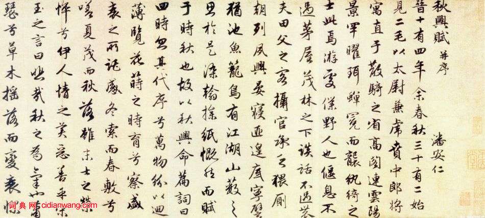 趙孟頫《秋興賦》 紙本,縱25.7厘米,橫284.3厘米,上海博物館藏。