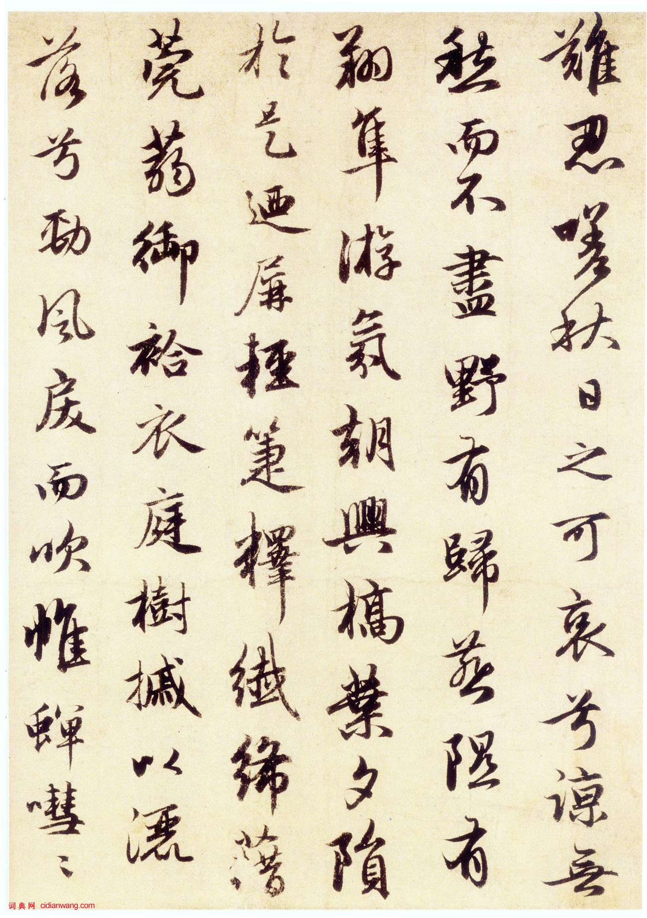 資源下載魏晉書法唐朝書法宋朝書法元朝書法明朝書法清朝書法近現代書法字典網>> 歷代書法>> 遼金元>> 趙孟頫行書《秋興賦》(5)正文 趙孟頫行書《秋興賦》(5)作者:趙孟頫 書體:行書 首 頁 上一頁 1 2 3 4 5 6 7 下一頁 尾 頁趙孟頫的相關書法作品:趙孟頫 《近來吳門帖》 趙孟頫《行書杜甫詩軸》 趙孟頫《江南淨土詞十二首》 趙孟頫行書《止齋記》 趙孟頫小楷《洛神賦》 趙孟頫·跋趙佶《竹禽圖》 趙孟頫行書《陋室銘》 趙孟頫小楷《漢汲黯傳》 趙孟頫行書《太湖石贊》 相關文章:王獻之·洛神賦十三行 (楷書)玉版十三行初拓本 柳公權十三行 【釋文】晉中(書...林散之《自作詩附寄楊嘯翁二律並書》 (行書)林散之《自作詩附寄楊嘯翁二律並書》 1914年 釋文: 款署:甲寅九月十三午時,...王寵《草書崔顥詩》軸 (草書)王寵《草書崔顥詩》軸 紙本 行草 82×28.8cm 北京故宮博物院藏 【釋文...張照行書《臨米芾詩帖卷》 (行書)張照《臨米芾詩帖卷》紙本行書 44.6×404.1cm 台北故宮博物院藏 釋文...傅眉《草書杜甫進艇詩句》軸 (草書)傅眉《草書杜甫進艇詩句》軸 紙本 117×27cm 山西省博物院藏釋文:俱飛蛺...傅山小楷《五言詩》扇面 (小楷)傅山《楷書五言詩》扇 紙本 16.8×53cm 廣州藝術博物院藏 ...周天球行書《錄近作三首詩扇》 (行書)周天球《錄近作三首詩扇》行書 上海博物館藏【資料來源】轉自上海博物館藏明清書畫扇...居節·草書扇面 (草書)居節《草書扇面》,紙本,15.9×47.8cm。美國紐約大都會藝術博物館藏(顧...黃道周行草《明誠堂自書詩十章卷》 (行草)黃道周《明誠堂自書詩十章卷》行草 崇禎十七年(1644年)韓天衡氏藏《明黃道周行...蔡襄《腳氣帖》 (行草)【釋文】仆自四月以來,輒得腳氣發腫,入秋乃減,所以不辭北行,然於湖山佳致未忘耳。...