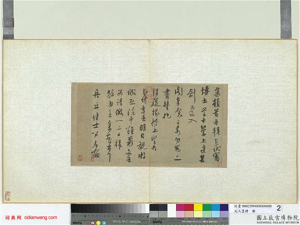 又稱《不及入閣帖》,此幅書法典雅超妙,筆力遒勁簡穆,字裡行間,爽利清通,神采奕奕。選自“元人舊跡”冊。收藏著錄於石渠寶笈續編(重華宮),第三冊,頁1688。