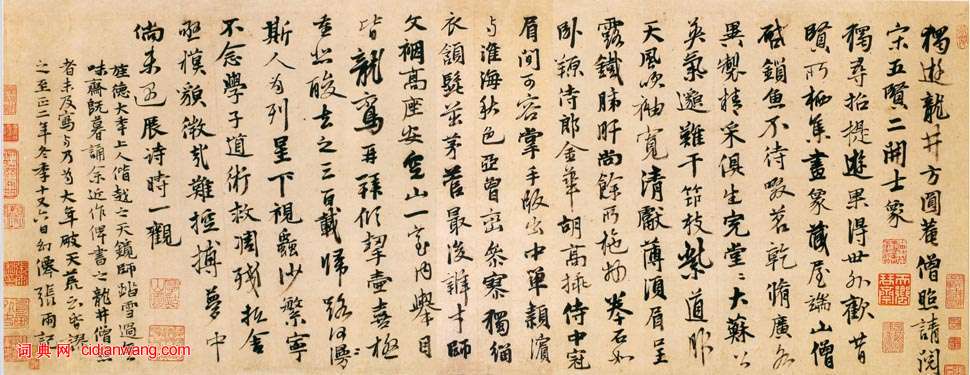 張雨《獨游龍井方圓庵行書詩卷》行書 30.5cm×77.5cm 至正二年(1342年) 香港中文大學文物館藏(北山堂捐贈)