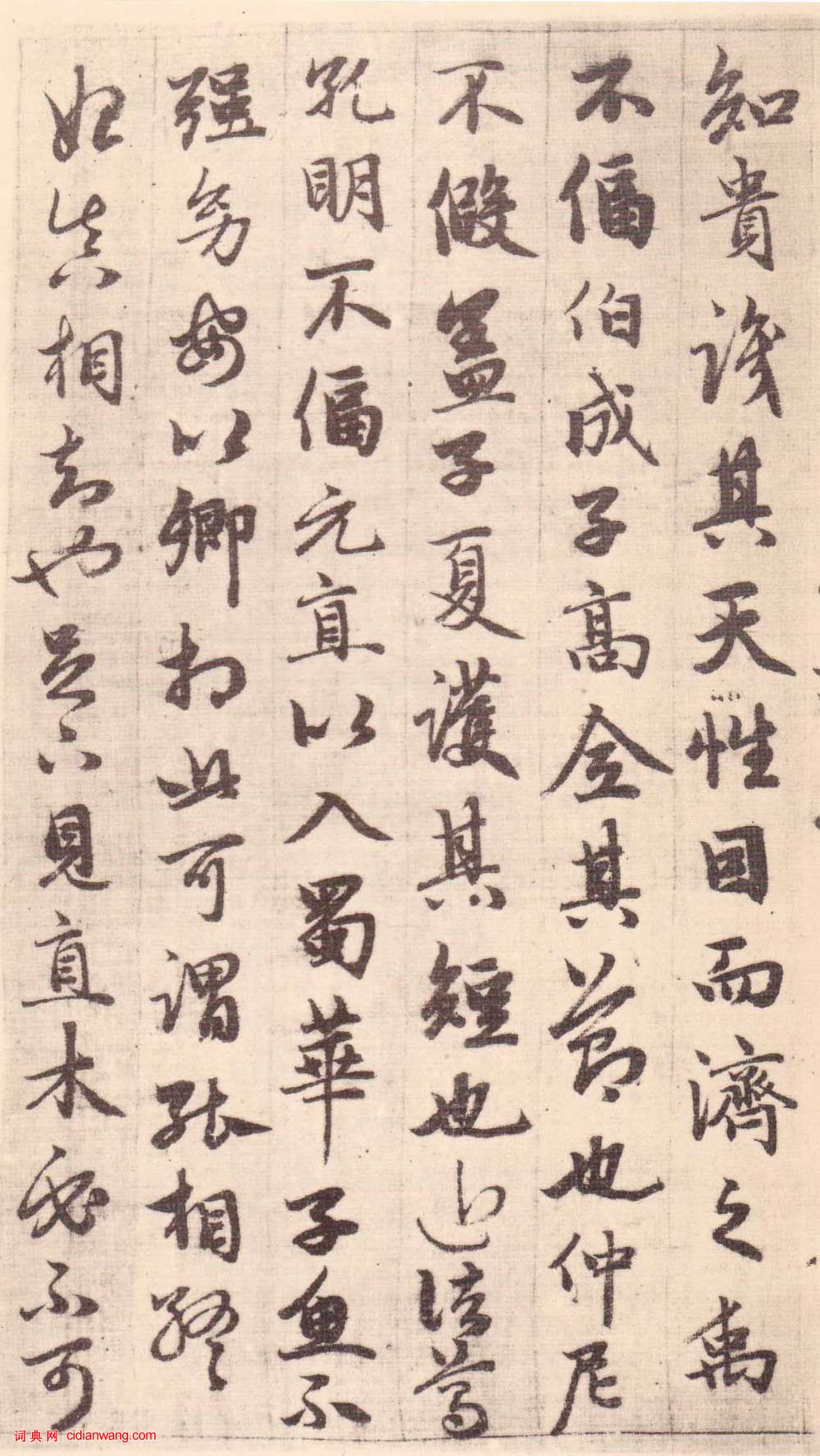 知,貴識其天性,因而濟之。禹不逼伯成子高,全其節也。仲尼不假蓋於子夏,護其短也。近諸葛孔明不逼元直以入蜀,華子魚不強幼安以卿相。此可謂能相始終,真相知也。足下見直木必不可