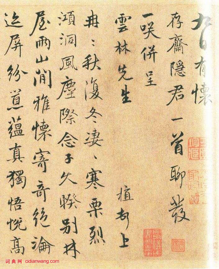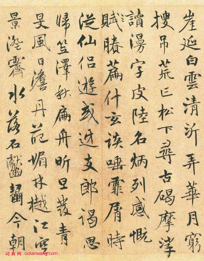 書法欣賞魏晉書法唐朝書法宋朝書法元朝書法明朝書法清朝書法近現代書法字典網>> 歷代書法>> 遼金元>> 陳植行書《懷存齋詩帖》(2)正文 陳植行書《懷存齋詩帖》(2)作者:陳植 書體:行書 首 頁 上一頁 1 2 陳植的相關書法作品:陳植行書《懷存齋詩帖》 陳植行書《致金問尺牘》 相關文章:周天球《行草書過宋故宮作詩扇》 (行草)周天球《行草書過宋故宮作詩扇》紙本草書 16.3×52cm 台北故宮博物院藏...吳雯《行書七絕詩軸》 (行書)吳雯《行書七絕詩軸》紙本行書 蘇州博物館藏 釋文:獵獵春蒲映短篷,垂楊輕打帽簷風...鍾紹京小楷墨跡《 轉輪聖王經》 (小楷)自從佛教傳入中土以後,寫經書法應運 而生,以至於成為除壁畫、造像藝術之外又一 絢...北齊《文殊般若經碑》 (楷書)《北齊文殊般若經碑》刻石無年代,以書法風格列入北齊。文殊般若經書法不似隋唐以後楷...吳昌碩《篆書執橐以樂四言聯》 (篆書)吳昌碩《篆書執橐以樂四言聯》 127.5×31.5cm×2 1918年 西泠...楊峴《隸書臨西狹頌》 (隸書)楊峴《隸書臨西狹頌》 韓天衡私人藏 楊峴一生好隸書,對東漢碑碣多有探求,晚年書多...東漢隸書《賢良方正殘石》 (隸書)《賢良方正殘石》拓片 可嘉提供《賢良方正殘石》,著名的《安陽殘石》之一,為《子...左宗棠行書《得意清心七言聯》 (行書)左宗棠《行書“得意清心”七言聯》 湖南譚國斌當代藝術博物館藏釋文:得意無言唯見道...北魏《石門銘》精拓本 (楷書)《石門銘》全稱《泰山羊祉開復石門銘》,北魏宣武帝永平二年(509)正月刻,由太原...文徵明行書《為沈天民作滸溪草堂圖》 (行書)明代文徵明高清書法欣賞《為沈天民作滸溪草堂圖》,乙未臘月,文徵明66歲寫,遼寧省...
