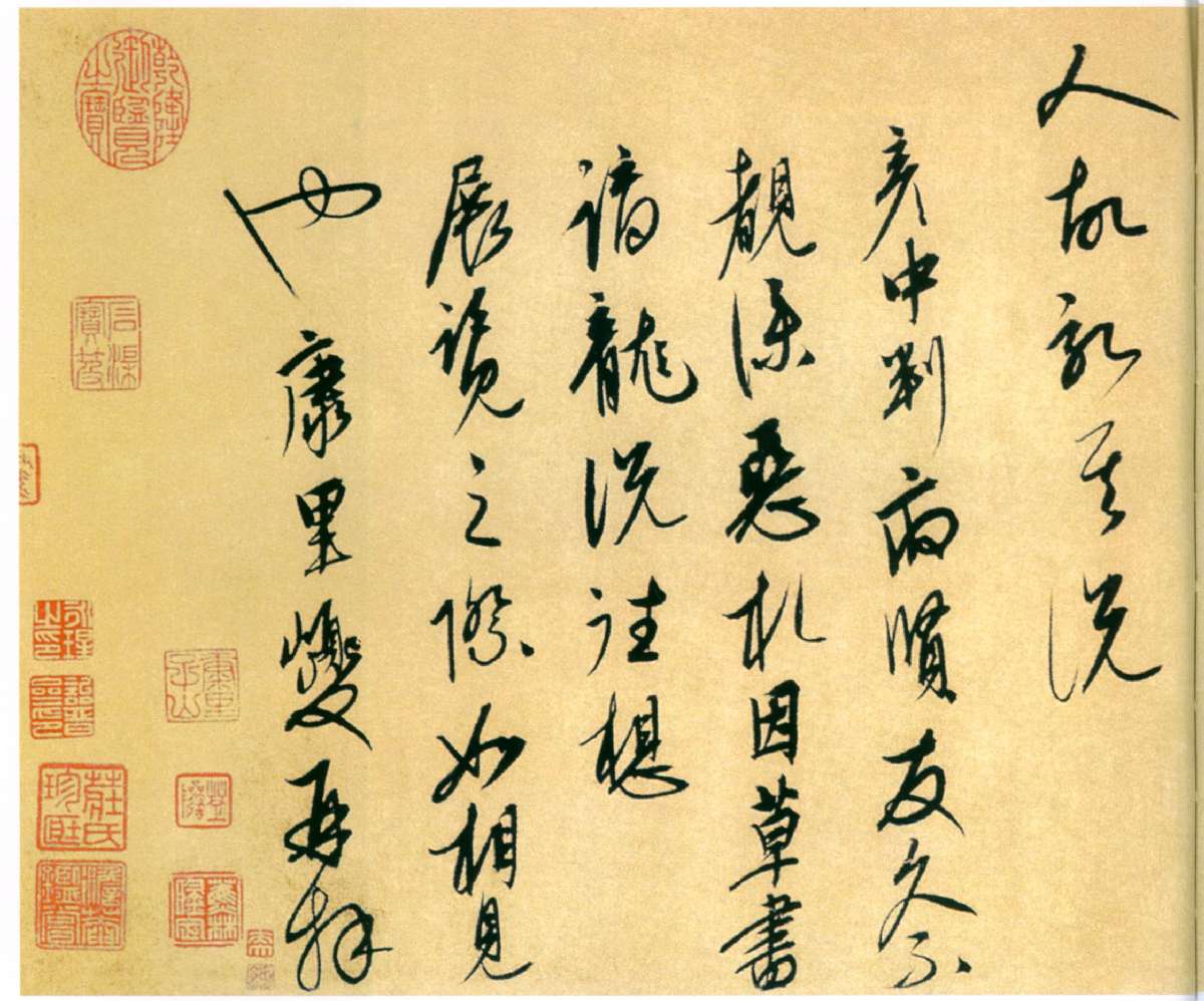 迎首鈐“松風堂”朱文印,款下鈐“康里子山”朱文印。本幅及隔水鈐有清梁清標“蕉林鑑定”、安岐“安儀周家珍藏”及乾隆內府諸鑑藏印。卷前有清永瑆題簽“康里子山謫龍說”。卷後有元周伯琦、昂吉、瞿智,清永瑆4段題跋。
