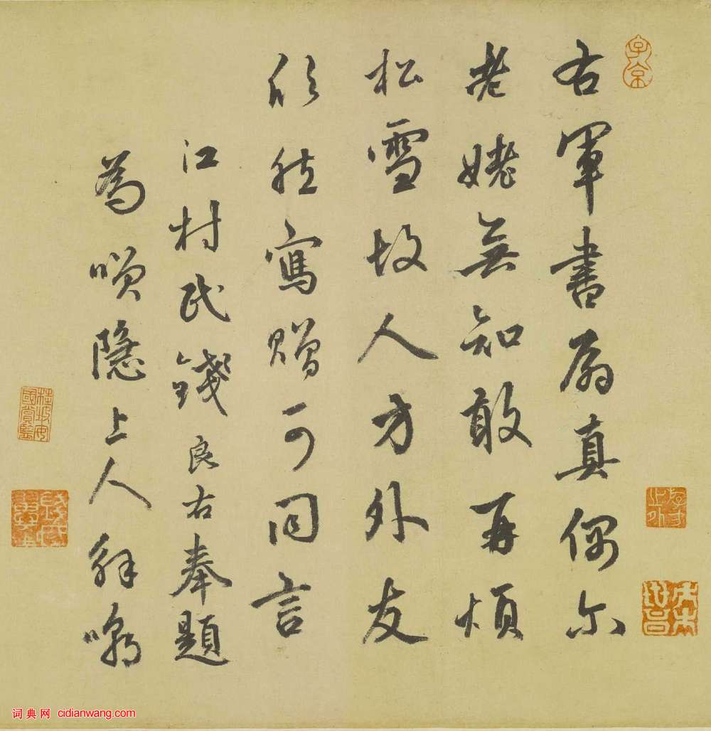 書法欣賞魏晉書法唐朝書法宋朝書法元朝書法明朝書法清朝書法近現代書法字典網>> 歷代書法>> 遼金元>> 錢良佑跋梁楷《右軍書扇圖》正文 錢良佑跋梁楷《右軍書扇圖》作者:錢良佑 書體:行書 錢良佑跋梁楷《右軍書扇圖》 北京故宮博物院藏錢良佑的相關書法作品:錢良佑行書跋《管道升書卷》 錢良佑跋梁楷《右軍書扇圖》 相關文章:唐棣·跋趙孟頫書《赤壁賦》 (行書)【釋文】東坡二賦,松雪要每一書之,敻出諸書之右,故深得晉人書法。晚年行筆圓熟,度...張瑞圖《行書六言聯句》 (行書)張瑞圖《行書六言聯句》軸 紙本 356×99厘米 年代不詳 榮寶齋藏釋文:修竹...吳歷《題畫詩》 (行楷)吳歷行楷書《題畫詩》信手寫來,疏密勻停,應規入矩,將蘇東坡的豐腴跌宕、天真爛漫的...曾國藩楷書《竹遊記》 (楷書)曾國藩是與同代包世臣、何紹基齊名的大書家。曾一生勤勉於書法創作,走過了一條由泛而...黃庭堅行楷《送四十九侄詩》 (行楷)黃庭堅《送四十九侄詩》卷 紙本,行楷書,35.5×130.2cm 北京故宮博物...柯九思·行楷題趙孟頫補書唐人臨王右軍瞻漢二帖 (行楷)柯九思《行楷題趙孟頫補書唐人臨王右軍瞻漢二帖》,來自北京匡時國際拍賣有限公司20...王覿《平江酒毛帖》 (行書)【釋文】覿再拜 平江酒毛汝能 乃覿所辟置 天下之奇材 而湯德廣諸人 不以法度御之...西漢隸書《銀雀山漢簡》 (隸書)《銀雀山漢簡》 《銀雀山漢簡》於一九七二年四月間在山東臨沂銀雀山的兩座前漢墓中出...董其昌行書《大唐中興頌》 (行書)《大唐中興頌》系唐代大詩人元次山(結)所撰,由唐代大書家顏真卿用楷書大字所寫,鐫...王易簡小楷《跋保母帖》 (小楷)(宋)王易簡小楷《跋保母帖》。故宮博物院藏。王易簡(約公元1279年前後在世),...