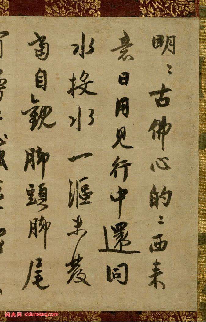 書法欣賞魏晉書法唐朝書法宋朝書法元朝書法明朝書法清朝書法近現代書法字典網>> 歷代書法>> 遼金元>> 了庵清欲行書《法文》(2)正文 了庵清欲行書《法文》(2)作者:了庵清欲 書體:行書 首 頁 上一頁 1 2 3 下一頁 尾 頁了庵清欲的相關書法作品:了庵清欲行書《法文》 了庵清欲·法文 相關文章:張從申·茅山玄靜碑 (楷書)元拓張從申茅山玄靜碑《元拓張從申茅山玄靜碑》簡介:張從申茅山玄靜碑,全名《唐茅山...岳飛前《出師表》 (行草)在南陽武侯祠大殿左側的碑廊里,鑲嵌著諸葛亮的前後《出師表》石刻。前後《出師表》共...張雨行楷《鐵琴詩卷》 (行楷)張雨《鐵琴詩卷》紙本 高25.4cm 至元五年(1339) 上海博物館藏 【釋文...張瑞圖《行書古洞五律詩軸》 (行書)張瑞圖《行書古洞五律詩軸》紙本金箋行書 112.2×65.6cm 浙江省博物館...倪元璐《草書瀾園招飲詩扇面》 (草書)倪元璐《草書瀾園招飲詩扇面》 上海博物館藏釋文:亦為數合解風煙,遂入藍田似輞川。...黃侃《隸書鶯啼序 》 (隸書)黃侃《隸書頁》 湖北省博物館藏 釋文:鶯啼序 層陰傍樓散晚,悄梧飄暗戶。閉孤館詞...鍾繇《力命表》 (楷書)《力命表》,鍾繇小楷代表作。鍾繇墨跡今已無存,此為後世摹刻。鍾繇小楷書,章奏體。...唐伯虎行書《題跋達摩六代祖師圖》 (行書)明代唐伯虎書法題跋達摩六代祖師圖,遼寧省博物館藏。吳雯《行書七絕詩軸》 (行書)吳雯《行書七絕詩軸》紙本行書 蘇州博物館藏 釋文:獵獵春蒲映短篷,垂楊輕打帽簷風...張雨行書《題張彥輔畫詩卷》 (行書)張雨《題張彥輔畫詩卷》 紙本 29.3×148.5cm 無紀年 北京故宮博物院...