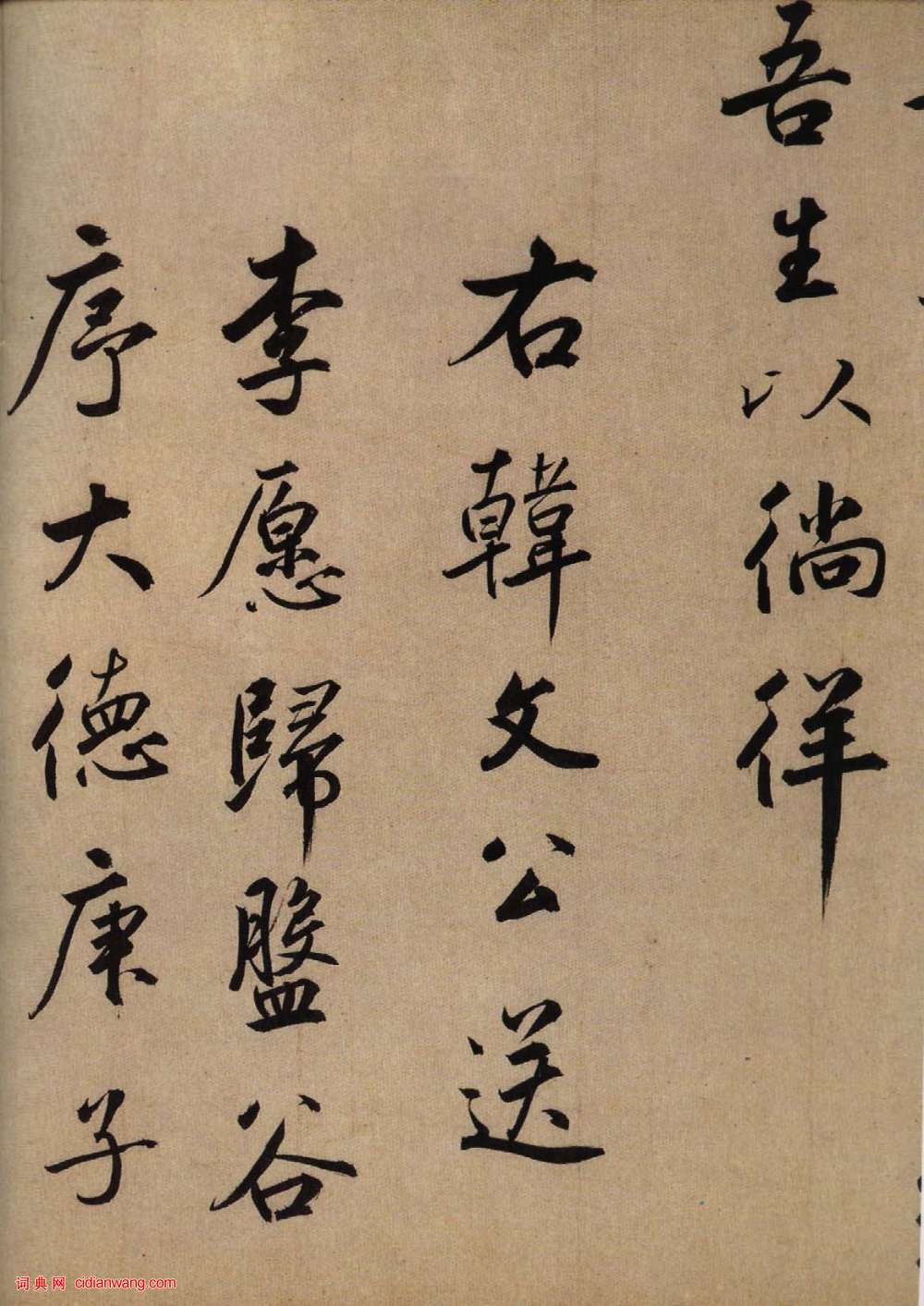 書法欣賞魏晉書法唐朝書法宋朝書法元朝書法明朝書法清朝書法近現代書法字典網>> 歷代書法>> 遼金元>> 鮮于樞行書《韓愈送李願歸盤谷序卷》(6)正文 鮮于樞行書《韓愈送李願歸盤谷序卷》(6)作者:鮮于樞 書體:行書 首 頁 上一頁 1 2 3 4 5 6 7 下一頁 尾 頁鮮于樞的相關書法作品:鮮于樞行書《王安石雜詩卷》 鮮于樞行草《書蘇軾海棠詩卷》 鮮于樞《御史箴卷》 鮮于樞行書《杜工部行次昭陵詩卷》 鮮于樞《行草詩讚卷》 鮮于樞·跋張先《十詠圖》 鮮于樞楷書《御史箴卷》 鮮于樞草書《韓愈進學解》 鮮于樞·跋顏真卿祭侄文稿 相關文章:成親王·雜體詩冊 (小楷)成親王,清朝皇族爵位,愛新覺羅·永瑆(1752-1823)是乾隆帝的第十一個兒...王鐸《行書臨閣帖軸》 (行書)王鐸《行書臨閣帖軸》綾本行書 235×52.7cm 北京故宮博物院館藏釋文:廙...張即之行書《棐茗帖》 (行書)張即之《棐茗帖》紙本行書 26.8×23.6cm 釋文:棐茗皆山中珍品拜貺感銘...趙朴初行書《蘇軾定風波詞一首》 (行書)趙朴初《蘇軾定風波詞一首》釋文:莫聽穿林打葉聲,何妨吟嘯且徐行。竹杖芒鞋輕勝馬,...歐陽詢·小楷黃帝陰符經 (小楷)選自《契蘭堂帖》黃帝陰符經。觀天之道,執天之行,盡矣。天有五賊,見之者昌。五賊在...王羲之行書《孔侍中帖》 (行書)王羲之《孔侍中帖》摹本, 紙本。縱26.9厘米。6行,42字。行書。釋文:九月十...金文《大盂鼎》欣賞 (篆書)《大盂鼎》,西周康王(公元前11世紀一前l0世紀)時期的金文,為西周初期重器、道...石韞玉·跋《唐摹蘭亭序》 (楷書)【釋文】蘭亭一帖,宋時人已聚訟。當唐文皇命御史蕭翼賺得蘭亭時,即命廷臣善書者各撫...田英章楷書《顏氏家訓》 (楷書)《顏氏家訓》是漢民族歷史上第一部內容豐富,體系宏大的家訓,也是一部學術著作。作者...倪元璐行草《賀文文起宮相舉子詩扇面》 (行草)倪元璐《賀文文起宮相舉子詩扇面》 金箋行草書。安徽省博物館藏釋文:十洞仙人伏闕呼...