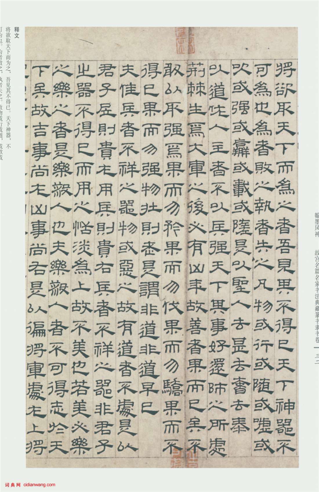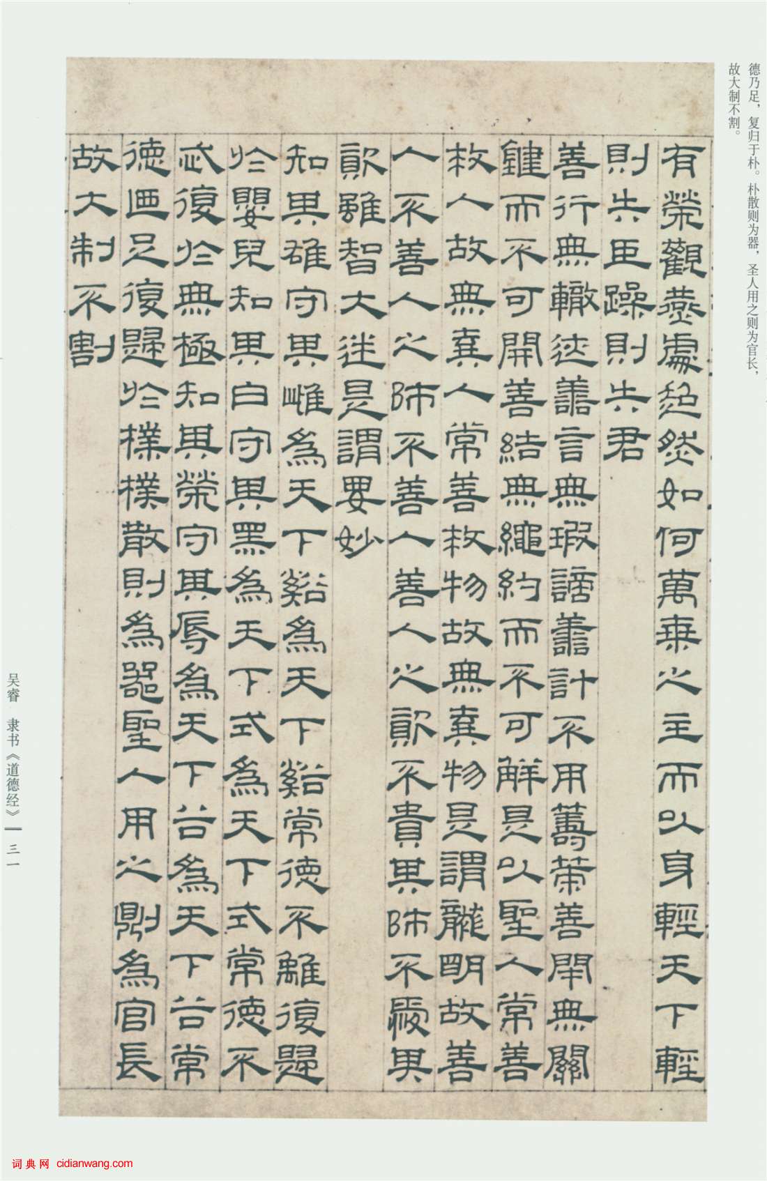 書法欣賞魏晉書法唐朝書法宋朝書法元朝書法明朝書法清朝書法近現代書法字典網>> 歷代書法>> 遼金元>> 吳叡隸書《道德經》(5)正文 吳叡隸書《道德經》(5)作者:吳叡 書體:隸書 首 頁 上一頁 1 2 3 4 5 6 7 8 9 10 下一頁 尾 頁吳叡的相關書法作品:吳叡篆書·千字文 吳叡隸書《離騷》 吳叡隸書《道德經》 相關文章:劉墉行書 《節臨薛紹彭蘭亭序臨本軸》 (行書)劉墉《節臨薛紹彭蘭亭序臨本軸》行書 128×60.5cm 山東省博物館藏 釋...翁方綱·行書立軸 (行書)【釋文】蘭亭臨本,蘇太簡家藏者與張金界奴三米諸本合於潁井絹本,此即神龍本也。豐道...文徵明《行書五言詩軸》 (行書)文徵明行書五言詩軸 見於中國嘉德國際拍賣有限公司2005春季拍賣會中國古代書畫專...蘇軾行書《次韻三舍人省上詩帖》 (行書)蘇軾《次韻三舍人省上詩帖》釋文: 次韻 三舍人省上一首 。 紛紛榮瘴何能久?...朱彝尊《隸書老圃醉鄉七言聯》 (隸書)朱彝尊《隸書老圃醉鄉七言聯》紙本隸書 124×29cm×2 瀋陽故宮博物院藏...張拭《嚴陵帖》 (行書)【釋文】拭自來嚴陵,與令婿伯恭遊從。每聞起居狀,及論議□詳,用以自尉。茲承□禦祥...北魏《李瞻墓誌》 (楷書)此志書法點畫豐腴舒展,結體翔動開張,其字形時有舛誤,殆由石質鬆脆且鐫刻倉促所致,...倪元璐草書《“章華宮人夜上樓”七言詩軸》 (草書)倪元璐《“章華宮人夜上樓”七言詩軸》 紙本行草書,134×50.8cm。日本東...不會選帖?楷行草臨習絕竅一、關於草書的臨習 1、草書分為兩類:一是章草,即隸之草;二是今草,即楷之草,理...王寵·自書雜詩二種 (草書)王寵《自書雜詩二種》。本書是明代書法家王寵用草書所寫的雜詩卷,紙本,行草書,共7...
