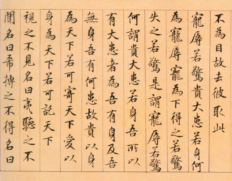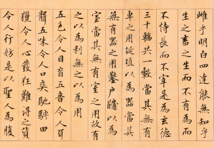 書法欣賞魏晉書法唐朝書法宋朝書法元朝書法明朝書法清朝書法近現代書法字典網>> 歷代書法>> 遼金元>> 鮮于樞小楷《老子道德經卷》(2)正文 鮮于樞小楷《老子道德經卷》(2)作者:鮮于樞 書體:小楷 首 頁 上一頁 1 2 3 4 5 6 7 8 9 下一頁 尾 頁鮮于樞的相關書法作品:鮮于樞·跋顏真卿祭侄文稿 鮮于樞·跋張先《十詠圖》 鮮于樞行書《杜工部行次昭陵詩卷》 鮮于樞小楷《老子道德經卷》 鮮于樞行草《書蘇軾海棠詩卷》 鮮于樞行書《韓愈送李願歸盤谷序卷》 鮮于樞《御史箴卷》 鮮于樞草書《杜甫魏將軍歌詩》 鮮于樞草書《韓愈進學解》 相關文章:董其昌《蜀素帖後跋》 (行書)《蜀素帖》,為北宋書法家米芾的墨寶。寫於哲宗元祐三年(1088年),以行書寫成。...黃侃《隸書難披獨倚七言聯》 (隸書)黃侃《隸書難披獨倚七言聯》 湖北省博物館藏 釋文:難披梗莽尋千古,獨倚青冥望八荒...楊維楨草書《溪頭流水泛胡麻七絕詩軸》 (草書)楊維楨 《草書“溪頭流水泛胡麻”七絕詩軸》 紙本草書 107.7×34.9cm...吳熙載《篆書心情天地七言聯》 (篆書)吳熙載《篆書心情天地七言聯》紙本篆書 127.5×27.5cm×2 1863...蘇軾行書《陽羨帖》 (行書)蘇軾行書《陽羨帖》書於1085年(元豐八年),這是一則信禮,亦稱《買天陽羨帖》。...董其昌·題李公麟《擊球圖》 (行書)董其昌題李公麟《擊球圖》,行書。董其昌(1555-1636年),字玄宰,號思白、...東漢篆書《少室石闕銘》 (篆書)東漢篆書碑刻。石碑篆額題《少室神道之闕》。延光二年立於嵩山,是“嵩山三闕”之一。...張瑞圖《行書鬱郁雙松老詩》 (行書)張瑞圖《行書鬱郁雙松老詩》紙本行書 釋文:鬱郁雙松老,何年雨後移。插竿拈直乾,持...鄂君啟節銘文 (篆體)鄂君啟節釋文:一九五七年出土於安微省壽縣,是戰國中期楚國器,青銅製成,形似剖開的...張玄墓誌 (楷書)《張玄墓志銘》釋文:魏故南陽張府君墓誌。君諱玄,字黑女,南陽白水人也。出自皇帝之...