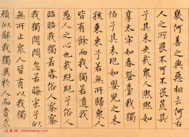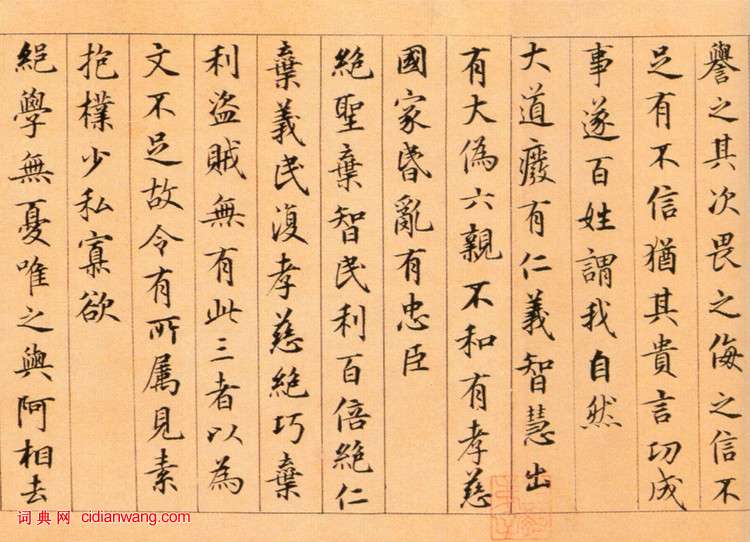 書法欣賞魏晉書法唐朝書法宋朝書法元朝書法明朝書法清朝書法近現代書法字典網>> 歷代書法>> 遼金元>> 鮮于樞小楷《老子道德經卷》(4)正文 鮮于樞小楷《老子道德經卷》(4)作者:鮮于樞 書體:小楷 首 頁 上一頁 1 2 3 4 5 6 7 8 9 下一頁 尾 頁鮮于樞的相關書法作品:鮮于樞草書《韓愈進學解》 鮮于樞楷書《御史箴卷》 鮮于樞行書《韓愈送李願歸盤谷序卷》 鮮于樞行草《醉時歌等唐人詩十二首》 鮮于樞行書《杜工部行次昭陵詩卷》 鮮于樞·跋顏真卿祭侄文稿 鮮于樞行草《書蘇軾海棠詩卷》 鮮于樞《行草詩讚卷》 鮮于樞草書《杜甫魏將軍歌詩》 相關文章:米芾行書《自敘帖》 (行書)米芾《自敘帖》宋拓本(局部) 北京故宮博物院藏 米芾《自敘帖》...王鐸草書《臨王獻之省前書帖軸》 (草書)王鐸《臨王獻之省前書帖軸》1635年作 縱189cm 橫46cm 藏處不詳 ...蘇軾楷書《醉翁亭記》 (楷書)《醉翁亭記》,歐陽修撰,蘇軾書。此碑刻,現存於安徽滁州醉翁亭景區寶宋齋內,兩塊四...黃庭堅·教審帖 (行草)【釋文】庭堅頓首,辱教審侍奉萬福爲慰。承讀書綠陰,頗得閑樂,甚善甚善。欲爲索兒錄...邢侗《行書臨柳公權論筆帖》 (行書)邢侗《行書臨柳公權論筆帖》 上海博物館藏 【資料...黃庭堅行書《雪寒帖》 (行書)黃庭堅《雪寒帖》(又稱《致明叔同年尺牘》) 紙本行書 28.8×17.5cm ...趙孟頫行書《千字文》 (行書)趙孟頫行書千字文為絹本,縱二百六十五毫米,橫三千七百三十四毫米,藏於故宮博物院。...張裕釗楷書《贈沈曾植書》 (楷書)張裕釗《贈沈曾植書》紙本楷書 118×53.5cm 嘉興博物館藏【資料來源】《...唐寅《行書題松崖圖五言詩扇面》 (行書)唐寅《行書題松崖圖五言詩扇面》紙本行書 廣州藝術博物館藏 釋文:長松積...柳公權楷書《原道碑》 (楷書)柳公權《原道碑》 楷書 大中5年(851) 10月唐大中5年10月12日,柳公權...