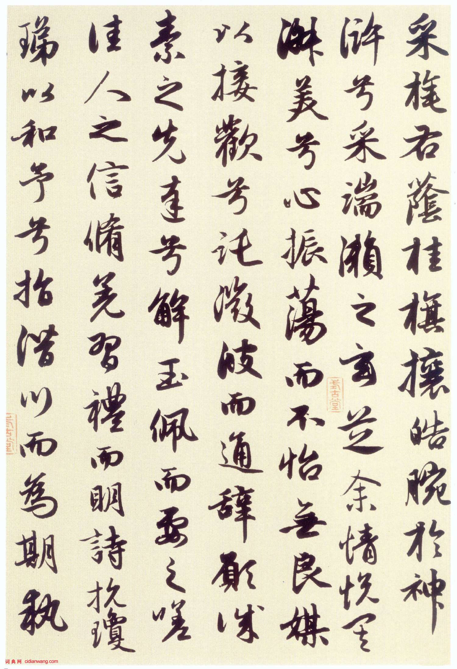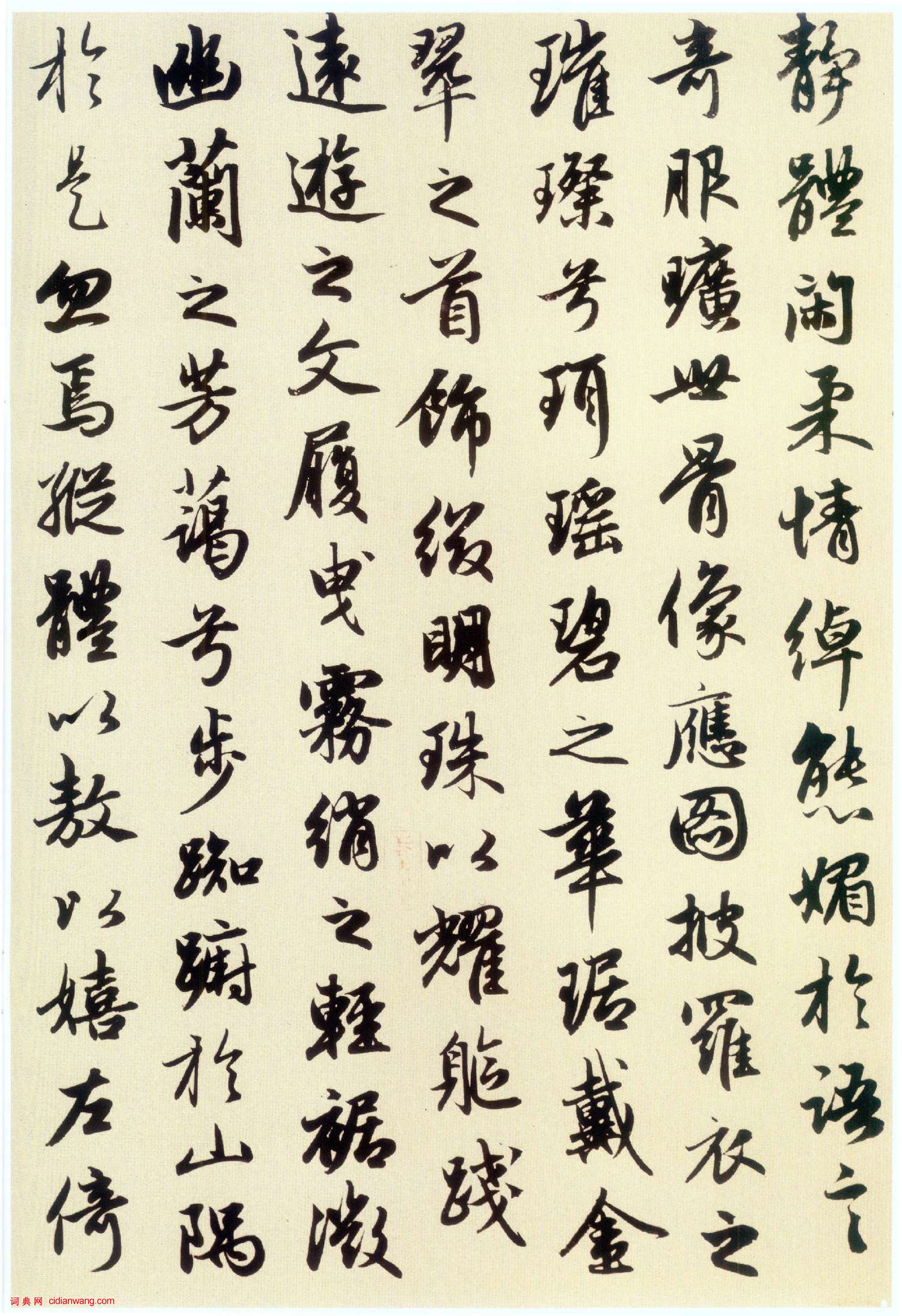 書法欣賞魏晉書法唐朝書法宋朝書法元朝書法明朝書法清朝書法近現代書法字典網>> 歷代書法>> 遼金元>> 趙孟頫行書《洛神賦》(3)正文 趙孟頫行書《洛神賦》(3)作者:趙孟頫 書體:行書 首 頁 上一頁 1 2 3 4 5 6 下一頁 尾 頁趙孟頫的相關書法作品:趙孟頫行書《違遠帖》 趙孟頫臨《定武蘭亭序》 趙孟頫·後赤壁賦 趙孟頫小楷《高上大洞玉經》 趙孟頫·心經冊頁 趙孟頫行書《楞嚴經》 趙孟頫行書臨褚遂良《枯樹賦》 趙孟頫行書《天冠山題詠詩帖》 趙孟頫·跋王羲之《大道帖卷》 相關文章:吳熙載《篆書心情天地七言聯》 (篆書)吳熙載《篆書心情天地七言聯》紙本篆書 127.5×27.5cm×2 1863...黃道周《草書自作五言詩軸》 (草書)黃道周《草書自作五言詩軸》 綾本草書 138.5×48.9cm 南通博物苑藏釋...趙佶草書《絳霄紫庭帖》墨拓 (草書)宋 趙佶《絳霄紫庭帖》(墨拓)28×82cm 原石藏安徽省博物館 【釋文】絳霄...袁枚《致尤蔭手札》 (行書)袁枚《致尤蔭手札》。此致尤蔭(字貢父)札內容為謝尤贈畫,並贊其畫,記述朋友間切壁...董其昌《五絕詩軸》 (行書)董其昌《五絕詩軸》,紙本,行書,縱77.5cm,橫31.1cm。南京博物院藏。黃庭堅·砥柱銘 (行書)釋文維十有一年,皇帝御天下之十二載也。道被域中,威加海外;六和同軓(軌),八荒有...顏真卿書《顏勤禮碑》碑拓對照《唐顏真卿書顏勤禮碑》是顏真卿晚年所書,其書法藝術已進入完全成熟時期。通篇氣勢磅...趙佶楷書《欲借風霜二詩帖》 (楷書)趙佶《欲借風霜二詩帖》紙本 楷書 33.2×63cm 台北故宮博物院藏這幅詩帖...張雨行書《論書帖》 (行書)張雨《論書帖》無紀年 蘇州博物館藏 【釋文】:宋季書學幾墜.蓀壁老人始用率更書為...劉炳森楷書《千字文》 (楷書)剛接觸書法時,劉炳森先生已經在全國非常火,但是聽到最多的話是“你看你寫的字,跟劉...