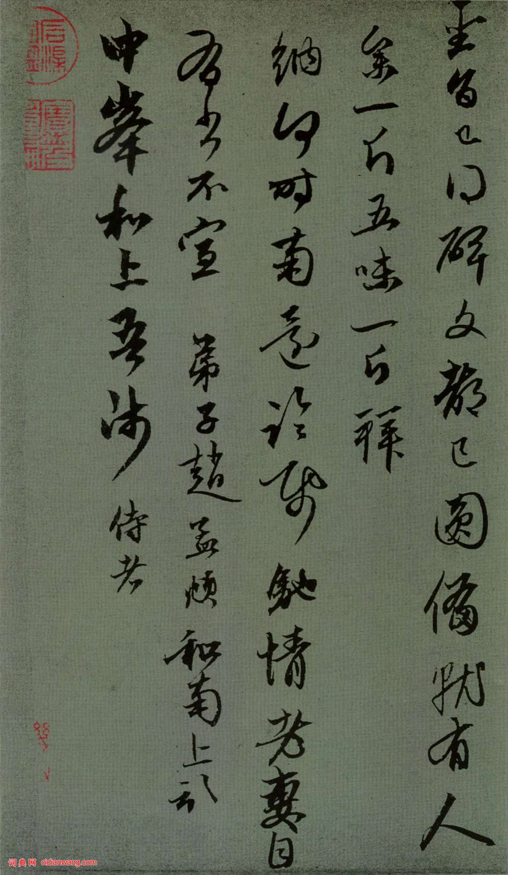 書法欣賞魏晉書法唐朝書法宋朝書法元朝書法明朝書法清朝書法近現代書法字典網>> 歷代書法>> 遼金元>> 趙孟頫行草《致中峰和尚札》冊(2)正文 趙孟頫行草《致中峰和尚札》冊(2)作者:趙孟頫 書體:行草 首 頁 上一頁 1 2 趙孟頫的相關書法作品:趙孟頫《真草千字文》 趙孟頫行書《致季博札》 趙孟頫草書《種松帖》 趙孟頫的手札欣賞 趙孟頫行書《秋興賦》 趙孟頫行書《違遠帖》 趙孟頫《王羲之軼事帖》 趙孟頫行書《書蘇軾西湖詩》 趙孟頫行書跋《韓滉五牛圖卷》 相關文章:吳熙載《篆書吳均“與朱元思書”四條屏》 (篆書)吳熙載《篆書吳均“與朱元思書”四條屏》(上圖來自《書法》雜誌1980年第三期)【...蔡襄《持書帖》 (行書)【釋文】襄啟:數日前遣使持書棨戟之下,輒邀行舸光臨弊境,計已通達當直,未審尊懷如...蔡襄·門屏帖 (行書)【釋文】襄顓詣門屏,陳謝推官呂君。九月日,襄上謁。《門屏帖》尺牘,紙本,縱27....陳洪綬行草《七絕詩扇面》 (行草)陳洪綬《行草七絕詩》扇面 紙本 約順治六年(約1649)安徽省博物館藏釋文:舊...劉墉《行書四條屏》 (行書)劉墉《行書四條屏》紙本行書 126×28cm×4 上海朵雲軒藏 釋文: ...趙昚·池上詩團扇 (行書)宋孝宗趙昚《池上詩團扇》,22.9×24.4cm。美國大都會藝術博物館藏(顧洛...北魏《石門銘》精拓本 (楷書)《石門銘》全稱《泰山羊祉開復石門銘》,北魏宣武帝永平二年(509)正月刻,由太原...黃庭堅《致景道十七使君尺牘》 (行書)黃庭堅《致景道十七使君尺牘》宋人袁立儒、范成大題跋 台北故宮博物院藏釋文:谿翁續...魯迅行書《贈坪井先生答客誚》軸 (行書)魯迅 《贈坪井先生答客誚》軸 113.7×32.3cm 1932年 上海魯迅紀...吳熙載《贈仲陶四兄隸書六言聯》 (隸書)吳熙載《贈仲陶四兄隸書六言聯》紙本 115.3×28cm×2 北京故宮博物院...