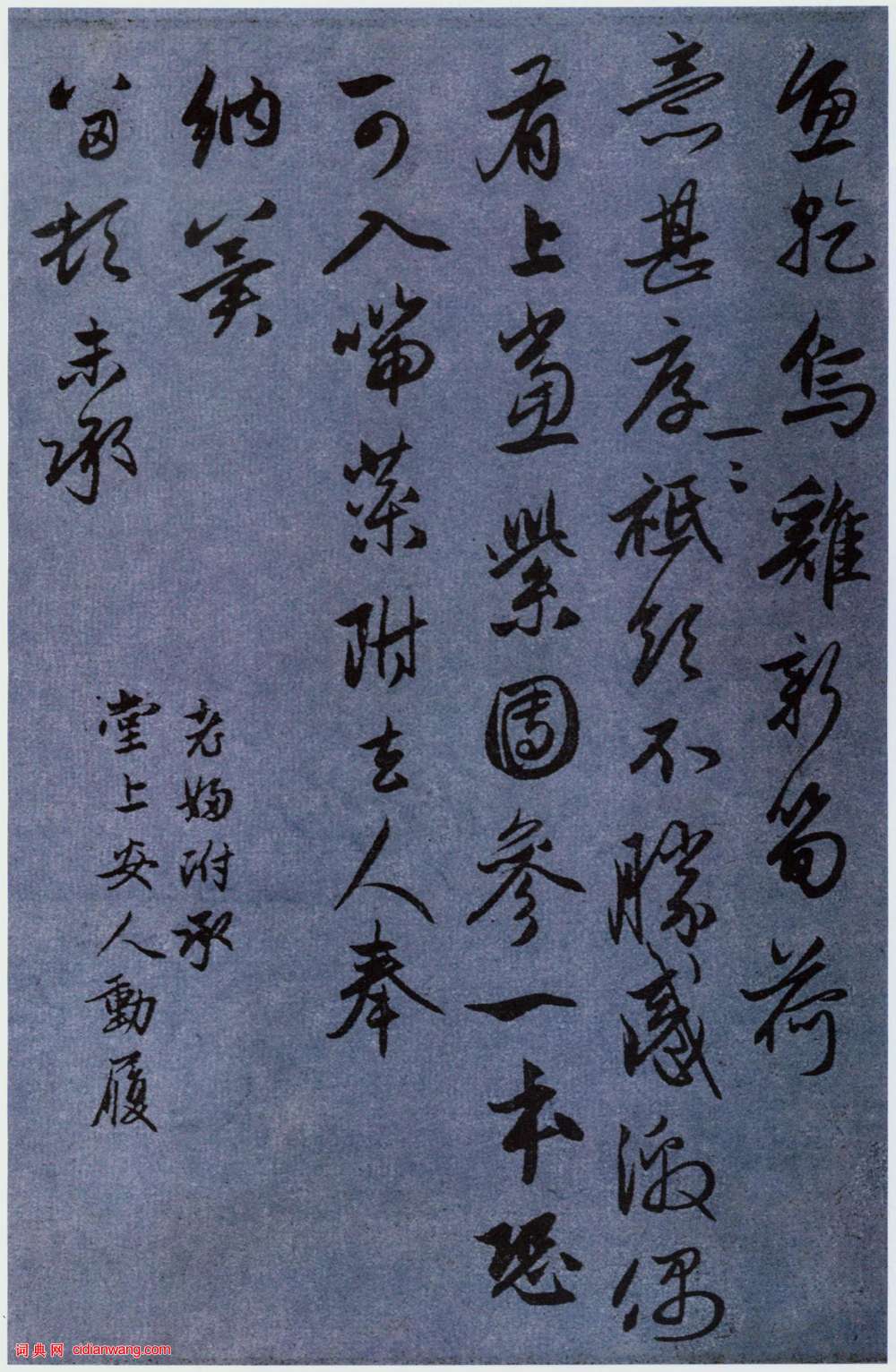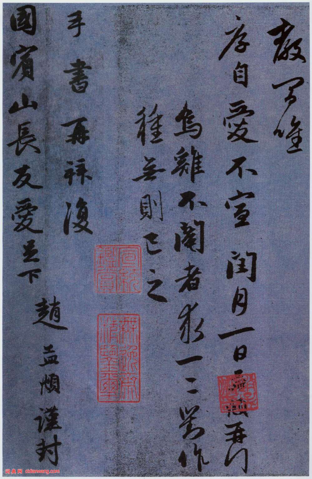 書法欣賞魏晉書法唐朝書法宋朝書法元朝書法明朝書法清朝書法近現代書法字典網>> 歷代書法>> 遼金元>> 趙孟頫行書《國賓山長帖卷》(3)正文 趙孟頫行書《國賓山長帖卷》(3)作者:趙孟頫 書體:行書 首 頁 上一頁 1 2 3 趙孟頫的相關書法作品:趙孟頫小楷《高上大洞玉經》 趙孟頫草書《種松帖》 趙孟頫行書《萬年歡曲》 趙孟頫《蘭亭序十三跋》殘本 9幅趙孟頫書畫題跋 趙孟頫 《近來吳門帖》 趙孟頫行草《王羲之軼事卷》 趙孟頫行書《山堂詩》拍了440萬 趙孟頫行書《與山巨源絕交書》 相關文章:王文治《行書七律詩軸》 (行書)王文治《行書七律詩軸》 紙本行書 72.5×24cm 南通博物苑藏 釋文:野雲...長沙窯詩文壺 《懸釣之魚》題記壺 (行書)行書——青釉褐彩“懸釣之魚”題記壺(局部) 殘高18厘米 底徑11.9厘米 湖...吳熙載《篆書吳均“與朱元思書”四條屏》 (篆書)吳熙載《篆書吳均“與朱元思書”四條屏》(上圖來自《書法》雜誌1980年第三期)【...龔自珍行書《致吳六老爺書札》 (行書)致吳六老爺書札。 釋文:弟行有日矣,不復能商榷文字,而自客夏到今,所過眼之拓本已...王士禎《行書扇面》 (行書)王士禎《行書扇面》紙本泥金行書 16.2×52cm 青島市博物館藏此扇書法頗有...顏真卿《祭侄稿》 (不詳)【釋文】維乾元元年,歲戊戌,九月,庚午朔,三日壬申,第十三叔,銀青光祿(大)夫,...盧中南楷書《蘭亭序》 (楷書)盧中南,當代著名書法家。對楷書情有獨鍾,專注於歐體,幾十年來潛心臨寫各種歐陽詢的...張照行書《臨王羲之心經冊》 (行書)張照《行書臨王羲之心經冊》紙本行書 16.7×9.8cm 8開16幅 台北故宮...譚延闓臨顏真卿《麻姑仙壇記》 (楷書)譚延闓(1876年-1930年),字組庵,湖南茶陵縣人,1876年生,是中國現代...張雨·澱湖社集尺牘 (行書)【釋文】天雨頓首。近因澱湖社集。愛其風物。遂結茆於西靜住庵雲缽道人居之東。則陳仲...