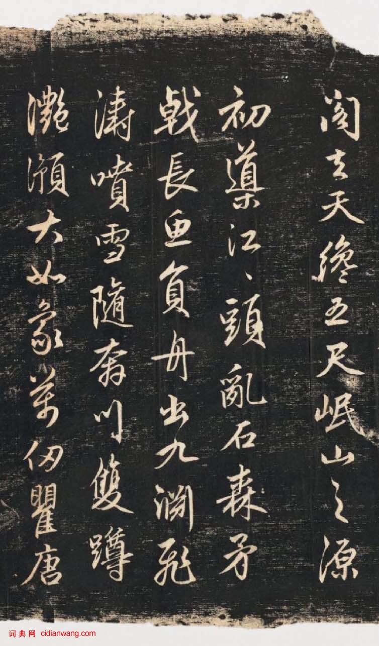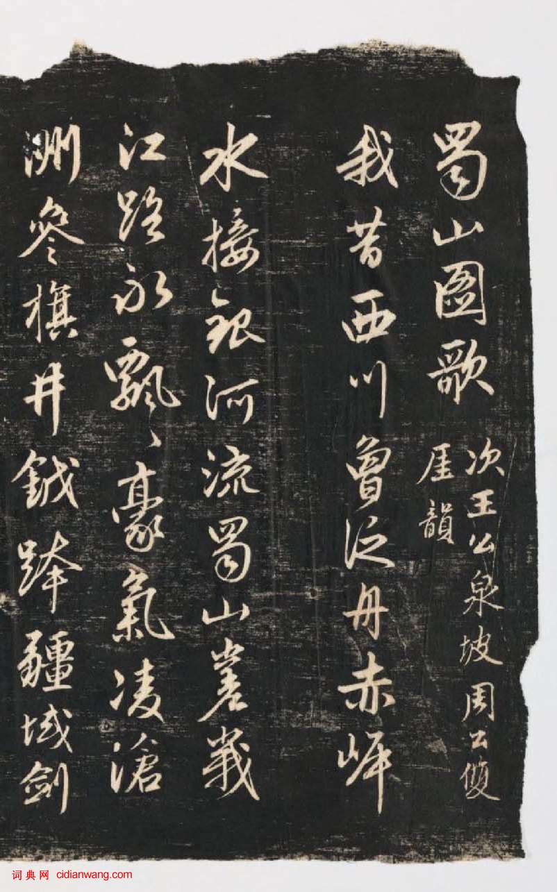 細觀《蜀山圖歌》拓本筆法,主用中鋒,令筆尖在筆心中運行,一氣連貫,筆劃迅疾,並少用側鋒,轉折自如,撇點精當,故書體丰容縟婉,特別動人。