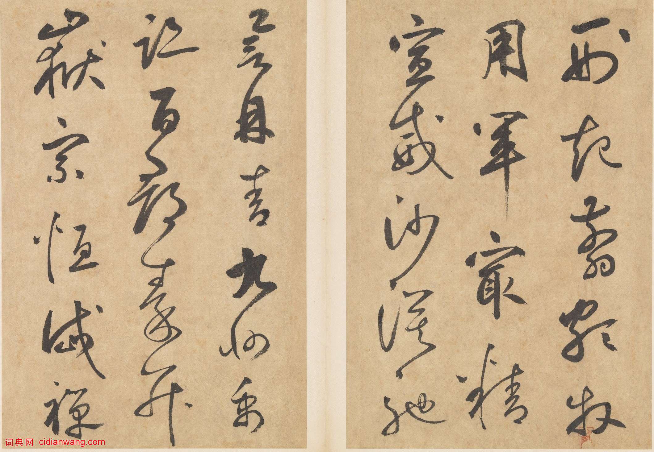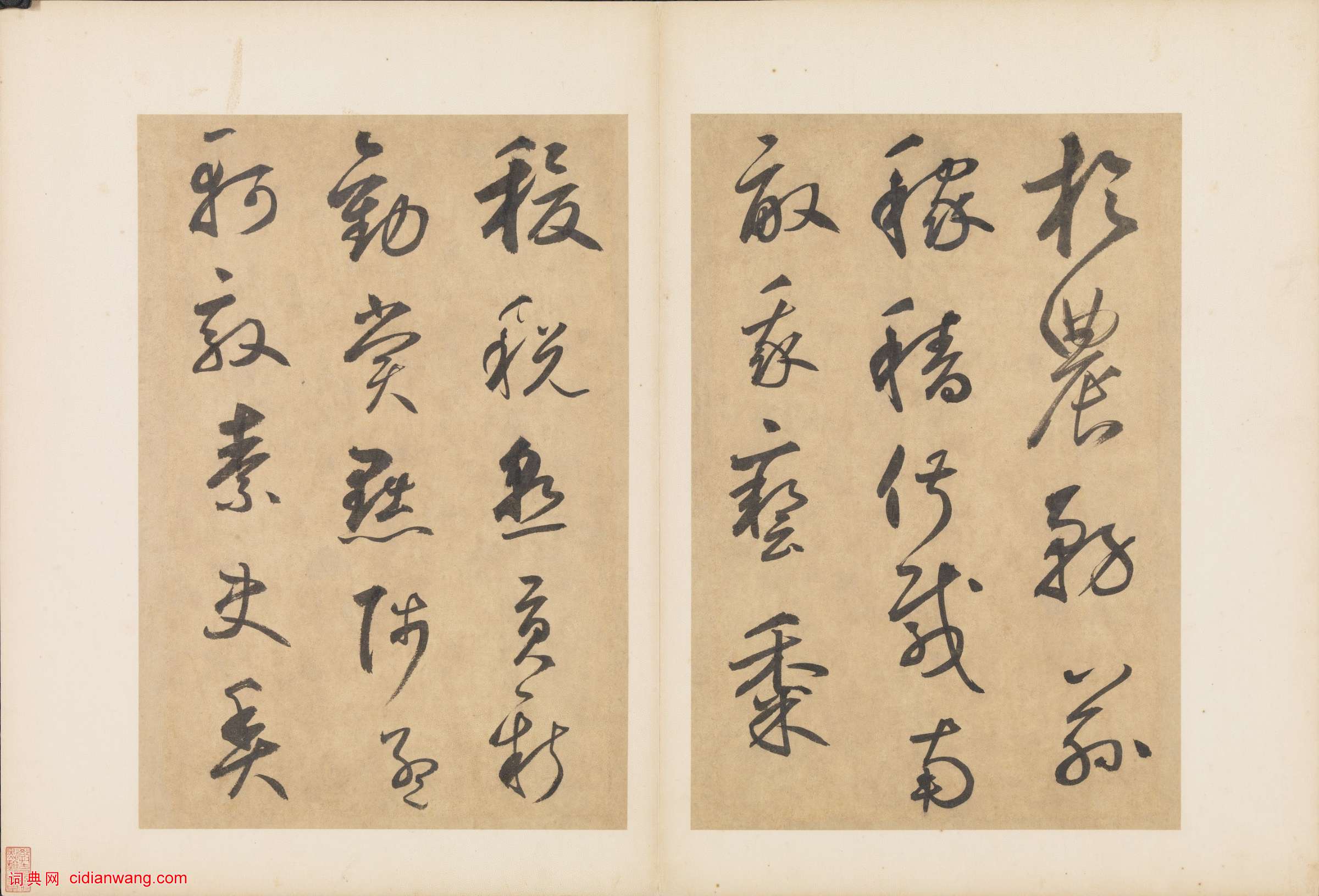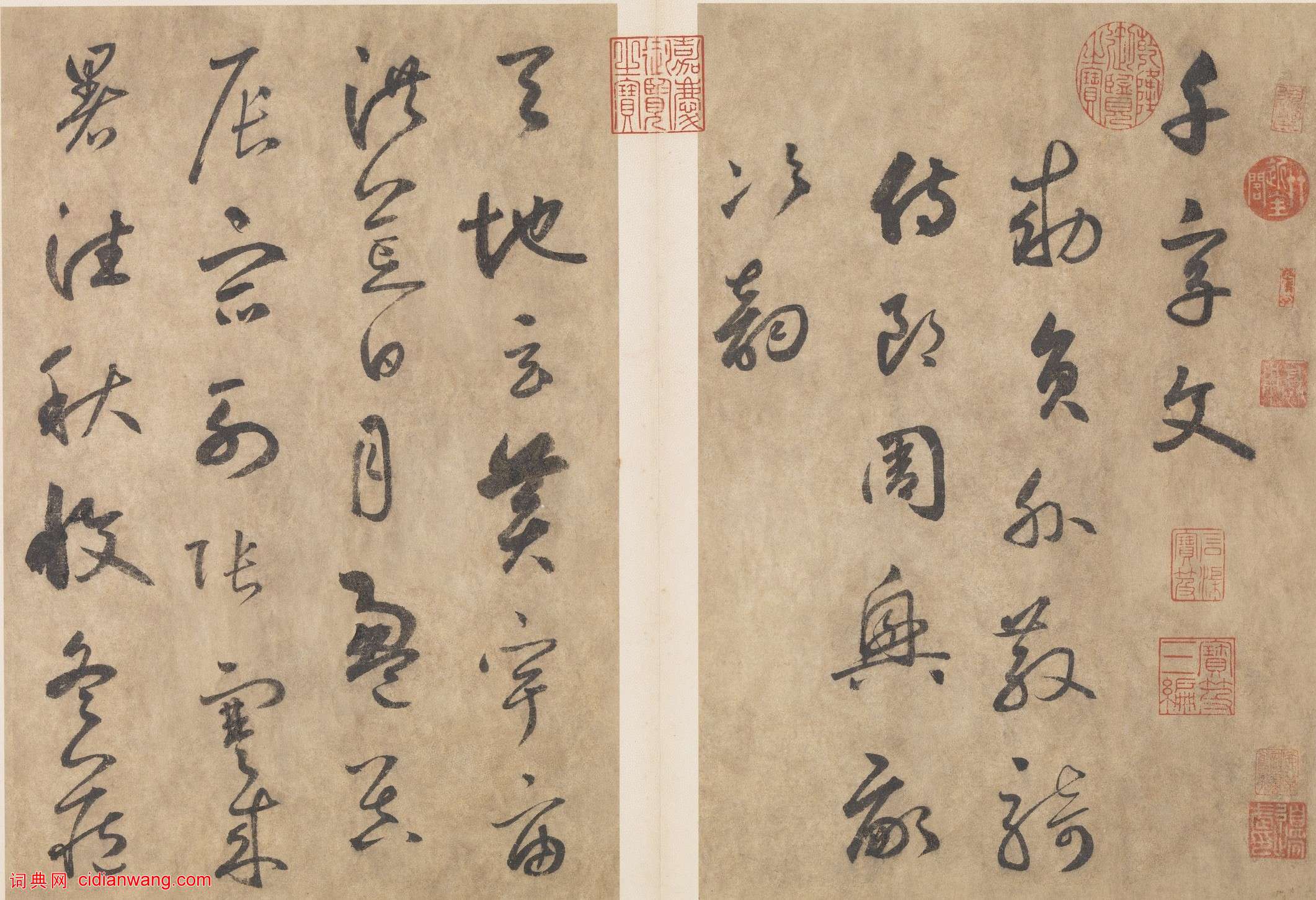 邊武《草書千字文冊》紙本草書 34.4×23.5cm×35 台北故宮博物院藏,元至正元年本(邊武書千文),後有明人陸深跋。