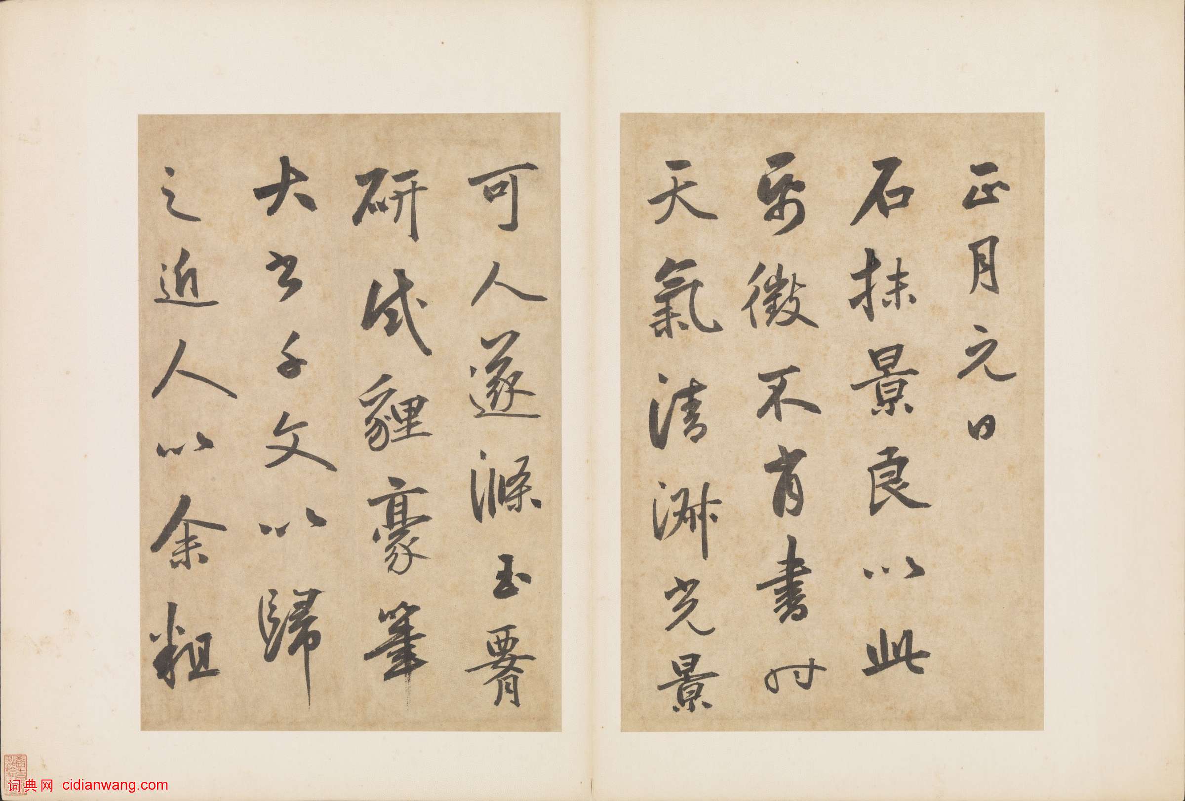 至元辛巳(1341),石抺景良向邊武索書,他使用玉腰硯、貍豪筆為其書寫千字文。全冊用筆圓厚蒼勁,結體疏密有致,用墨變化得宜,無論結字用筆,都可見鮮于樞之影響,不失為善學之者。