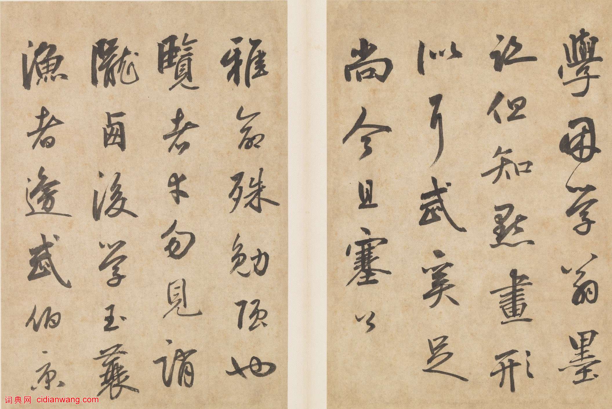 在存世元人書千文遺蹟中,很少有忠實於智永原跡者,有的寫成四體,有的作章草體,而邊武此跡大致依照智永的結體,不過不像原帖一樣將每個字處理為獨立的個體,而是有上下前後的呼應關係,至後半段,運筆淋漓酣暢,得心應手,尤其強調筆畫的動態,如有源源不絕的動力一般,迂迴繚繞,縱橫爭折。整體觀之,在穩厚沉著方面或許不如鮮于樞,但筆勢的展現卻有駸駸凌越前輩的氣魄。