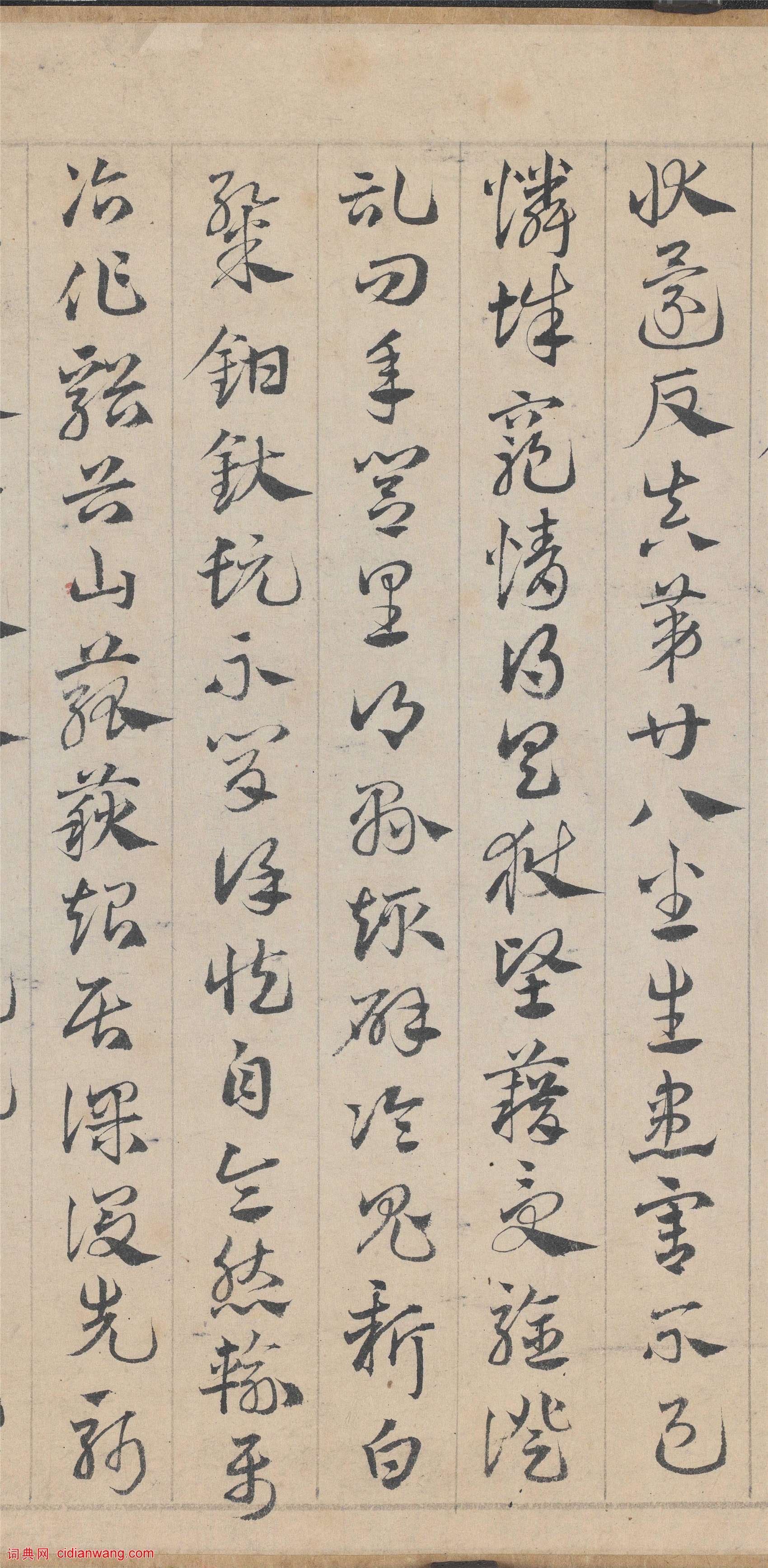 資源下載魏晉書法唐朝書法宋朝書法元朝書法明朝書法清朝書法近現代書法字典網>> 歷代書法>> 遼金元>> 鄧文原章草《臨皇象急就章》卷(13)正文 鄧文原章草《臨皇象急就章》卷(13)作者:鄧文原 書體:章草 首 頁 上一頁 5 6 7 8 9 10 11 12 13 14 下一頁 尾 頁 全文2018-1-3 18:48:34 鄧文原的相關書法作品:鄧文原行草《致景良郎中尺牘》 鄧文原行書《跋王羲之雨後帖》 鄧文原·跋褚遂良《倪寬贊》 鄧文原行書《近者帖》 鄧文原行書《家書帖》 鄧文原小楷《跋王獻之保母帖》 鄧文原行書《瞻近漢時二帖跋》 鄧文原行書《跋鮮于樞御史箴卷》 鄧文原《題伯夷頌詩帖》 相關文章:暑熱與書法的因緣《月令七十二候集解》中說:“暑,熱也,就熱之中分為大小,月初為小,月中為大,今則...王鐸《行楷王維詩》卷 (行楷)王鐸《行楷王維詩》卷,紙本,縱21cm,橫165.5cm,27行,行字不等,書於...陳永年草書《五律詩軸》 (草書)陳永年《五律詩軸》紙本草書 339×93.5cm 山東省博物館藏 圖片由可嘉...顏真卿《鮮于氏離堆記》摩崖石刻 (楷書)顏真卿《鮮于氏離堆記》摩崖石刻,唐寶應元年(762年)五月十六日鐫刻。自撰,楷書...蘇軾行書《李白仙詩卷》 (行書)宋 蘇軾《李白仙詩卷》 蠟箋 34.5×106cm 日本大阪市立美術館藏該帖為...王羲之·草書平安帖 (草書)【釋文】十二月六日。告姜道等。歲忽終。感嘆情深。念汝不可徃。得去十月書。知姜等平...朱耷《行書五言詩頁》 (行書)朱耷《行書五言詩頁》紙本行書 25×30.5cm 徐州市博物館藏釋文:泉壑窅無...鄭簠《隸書謝靈運石室山詩卷》 (隸書)鄭簠《隸書謝靈運石室山詩卷》紙本 縱39厘米、橫283厘米 安徽省博物館藏鄭簠...阮元《隸書含和年豐八言聯》 (隸書)阮元《隸書含和年豐八言聯》絹本隸書 113×28.5cm 1843年 山西省博...歐陽詢楷書《化度寺碑》宋拓全本 (楷書)歐陽詢《化度寺邕禪師塔銘》宋拓本 上海圖書館藏 海內孤本 國家一級文物《化度寺邕...