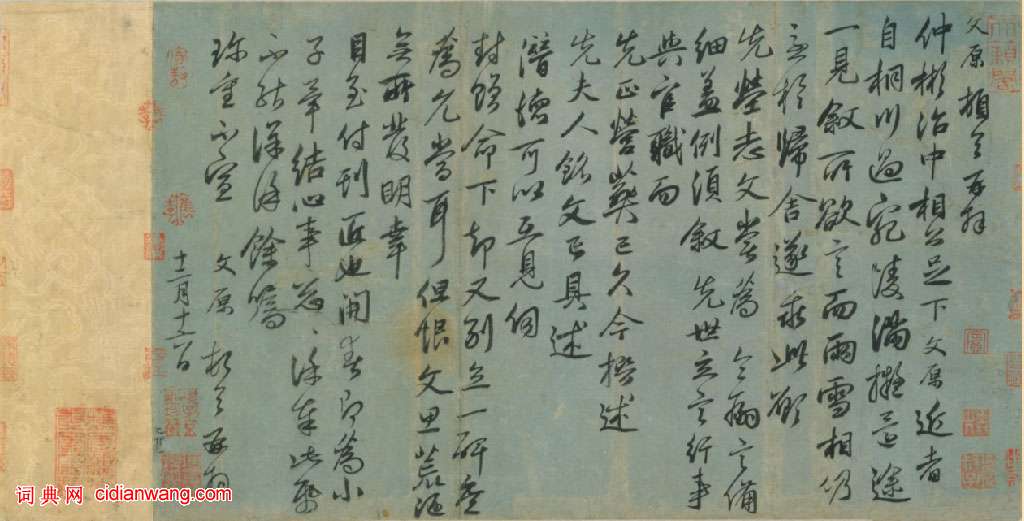文原頓首再拜仲彬治中相公足下。文原近者自桐川過宛陵,滿擬還途一見,敘所欲言,而雨雪相仍,急於歸舍,遂乖此願。先塋志文,嘗為令嗣言備細,蓋例須敘先世立言行事與官職,而先正營葬已久,今撰述先夫人銘文,已具述潛德,可以互見,伺封贈命下,卻又別立一碑,庶為允當耳。但恨文思荒陋,無所發明,幸目至付刊匠也。開春即為小子畢結心事,總總謹奉此紙,不能深詳,余囑珍重不宣。文原頓首再拜,十二月十六日。