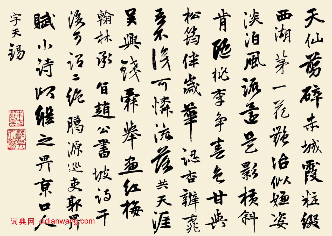 天仙剪碎赤城霞,妝綴西湖第一花。艷冶似嫌姿淡泊,風流還是影橫斜。肯隨桃李爭春色,甘與松筠伴歲華。認杏辨桃吾不識,可憐流落共天涯。