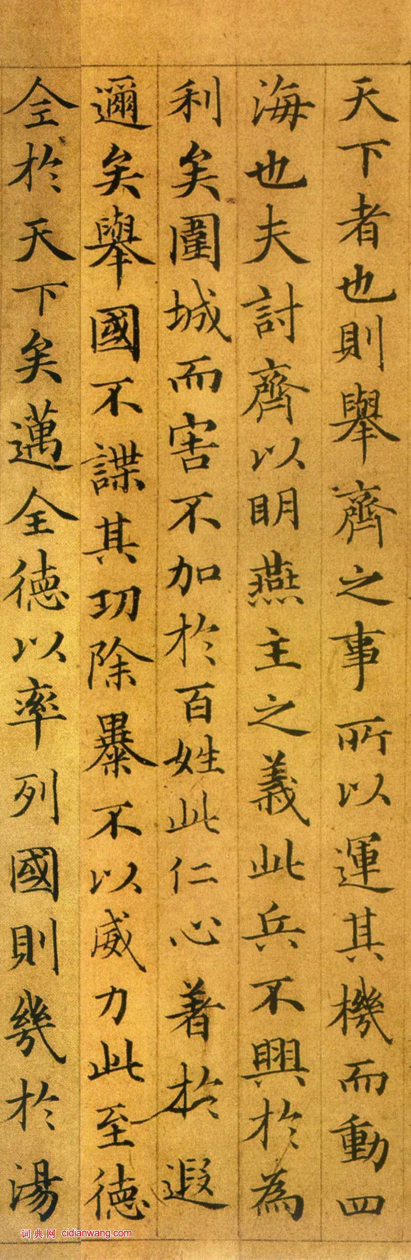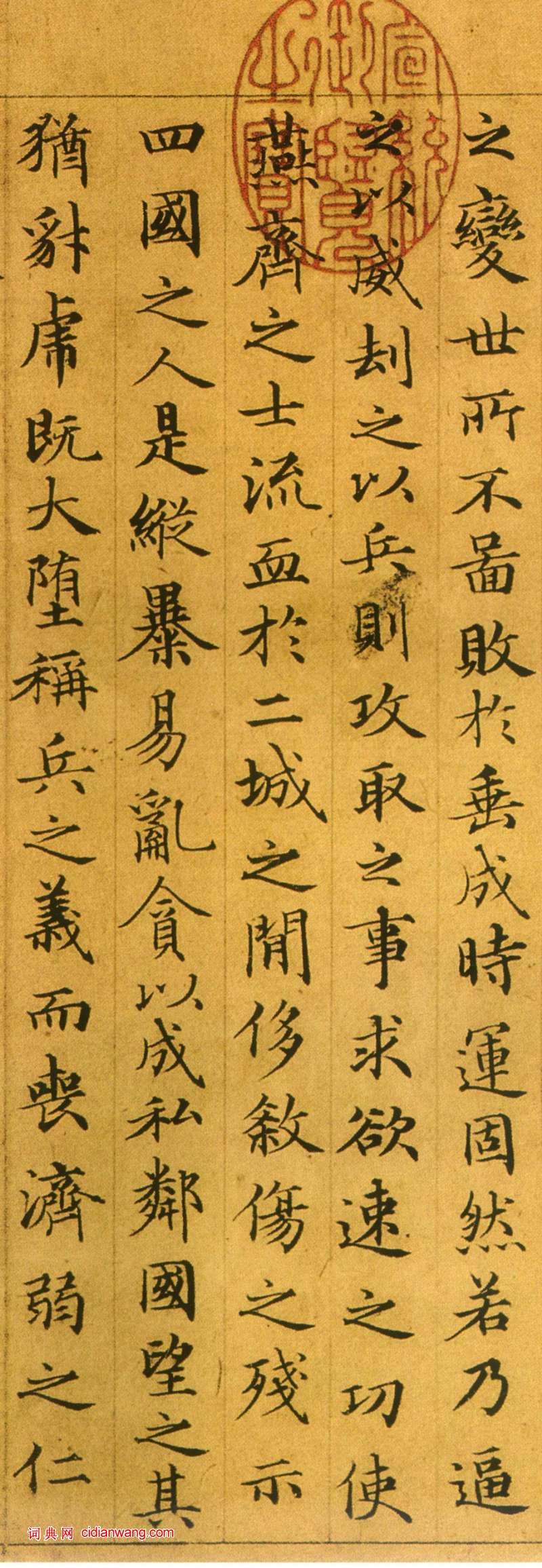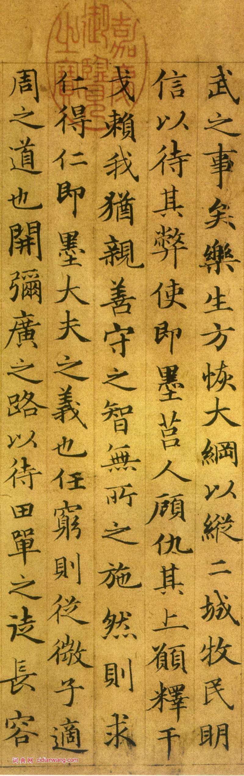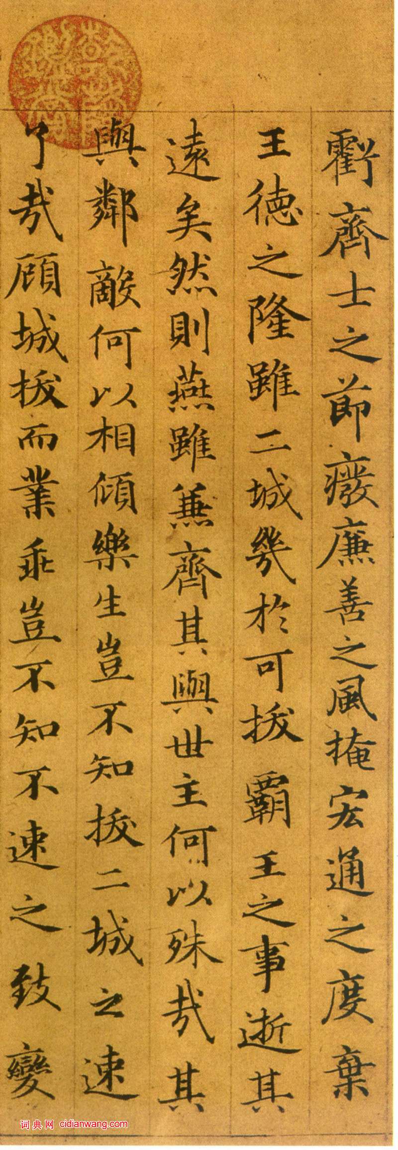 俞和臨《樂毅論》小楷真跡,至正十九年(1359)書,筆意清婉,姿態豐潤,妙能從吳興上窺大令,其酣恣處深得外拓神理,故有朗健多姿之態,且其用筆多方,圭角稍露,雖不及子昂之溫潤,卻亦神采奕奕,躍躍而有生氣,字裡行間,頗有歐字之清剛雅正之氣。