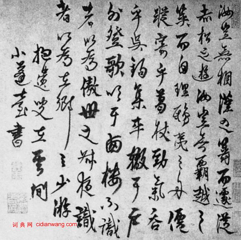 汝豈無相漢之籌,而遽從赤松之遊,汝豈無霸越之䇿 而自理鴟夷之舟 仙蹤寄乎葛杖勁氣吞乎 吳鉤集車轍乎戶外登歌吹於西樓不識者以為傲世之叔夜識者以為在鄉之少游 抱遺叟在雲間小蓬臺書