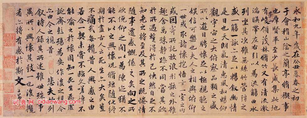 書法欣賞魏晉書法唐朝書法宋朝書法元朝書法明朝書法清朝書法近現代書法字典網>> 歷代書法>> 遼金元>> 趙孟頫行書《臨蘭亭序卷》正文 趙孟頫行書《臨蘭亭序卷》作者:趙孟頫 書體:行書 趙孟頫 《臨蘭亭序卷》紙本行書 26.1×66.7cm 無錫博物館藏釋文略,鈴印:趙氏子昂,松雪齋、趙孟頫印落款:子昂大圖:1 2 下一頁 尾 頁 全文2018-4-8 11:38:25 趙孟頫的相關書法作品:趙孟頫楷書《洞玄靈寶自然九天生神章經》 趙孟頫楷書《膽巴碑》 趙孟頫行草《病來月余帖》 趙孟頫楷書《東銘》 趙孟頫楷書《壽春堂記》 趙孟頫《閒居賦》 趙孟頫行楷《撫州永安院僧堂記》 趙孟頫兩版臨作《蘭亭序》 趙孟頫題《疏林秀石圖》 相關文章:陳子壯行書《五言詩軸》 (行書)陳子壯《五言詩軸》行書 台北何創時書法藝術基金會藏 釋文:春晴不十日,亦自有春情...董其昌楷書《五言古詩句》 (楷書)董其昌八十歲楷書作品欣賞《五言古詩句》紙本,60.9x169厘米。釋文:春至鶬鶊...張旭《肚痛帖》神一樣的存在! (草書)唐代文宗皇帝李昂曾下詔書,以李白的詩歌、裴旻的劍舞、張旭的草書為“三絕”,可見書...李文田《八言聯》 (不詳)釋文: 柳裊長條 松擎紫蓋 葉依黃鳥 花落春池 李文田 李文田《八言聯》,此《八...倪元璐《草書故人隔天風五言律詩軸》 (草書)倪元璐《草書故人隔天風五言律詩軸》綾本草書 169×40cm 山西博物院藏釋文...吳昌碩《篆書邊眉淮南七言聯》 (篆書)吳昌碩《篆書邊眉淮南七言聯》134×33cm×2 朱福元藏 釋文:邊眉還師辰...馮子振題易元吉《草蟲圖卷》 (行書)馮子振題易元吉《草蟲圖卷》 紙本 29.4X118.0cm 日本神奈川縣鎌倉市常...張雨行書《自書詩冊》 (行書)至正五年(1345) 張雨《自書雜詩冊》粉花箋 23.7×15.3cm×24...張縯·跋蘇軾《黃州寒食詩帖》 (楷書)張縯跋蘇軾《黃州寒食詩帖》,楷書。現藏台灣故宮博物院。倪元璐行草《致黃道周等書札》 (行草)倪元璐《致黃道周等書札》行草書 福建省博物館藏釋文:大錄讀已爛熟, 彌不厭多,有...