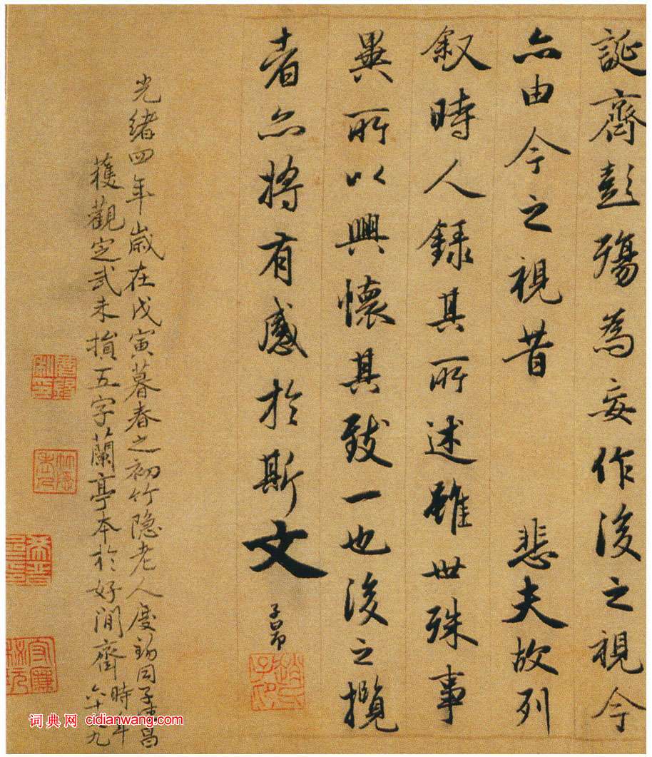 書法欣賞魏晉書法唐朝書法宋朝書法元朝書法明朝書法清朝書法近現代書法字典網>> 歷代書法>> 遼金元>> 趙孟頫行書《臨蘭亭序卷》(2)正文 趙孟頫行書《臨蘭亭序卷》(2)作者:趙孟頫 書體:行書 首 頁 上一頁 1 2 3 4 5 下一頁 尾 頁 全文2019-2-7 10:14:35 趙孟頫的相關書法作品:趙孟頫行書《國賓山長帖卷》 趙孟頫行書《臨蘭亭》 趙孟頫行書《致季博札》 趙孟頫·跋蘇軾《治平帖》 趙孟頫《行草陶淵明五言詩頁》 趙孟頫行楷《撫州永安院僧堂記》 趙孟頫《趵突泉詩》 趙孟頫小楷《跋陳琳浮鳧圖》 趙孟頫行書《天冠山題詠詩帖》 相關文章:釋夢英《篆書千字文》 (篆書)夢英《篆書千字文》拓本,此碑刻於北宋乾德三年。宋代釋夢英和尚《篆書千字文》,夢英...董其昌·跋米友仁《瀟湘奇觀圖》 (行書)董其昌跋米友仁《瀟湘奇觀圖》,縱19.8cm,故宮博物館藏。題跋前後共三段。董其...東漢隸書《曹全碑》 (隸書)《曹全碑》全稱《漢郃陽令曹全碑》,碑高253厘米,寬123厘米,隸書,字共20行...曾熙《行書作德發言七言聯》 (行書)曾熙《行書作德發言七言聯》紙本行書 136×32.5cm×2 1921年作 ...沙孟海《行書聽鸝深處橫幅》 (行書)沙孟海《行書聽鸝深處橫幅》 29×129cm 1985年作 浙江省博物館院藏釋...王紱《重過慶壽寺等詩帖》 (楷書)王紱書《重過慶壽寺等詩帖》,紙本,冊頁,縱26.8cm,橫41.2cm,楷書,1...楊凝式《盧鴻草堂十志圖題跋》 (行書)《盧鴻草堂十志圖題跋》釋文:右覽前晉留書記左郎中家舊傳盧浩然隱君嵩山十志。盧本名...王寵《自書游包山詩》草書手卷 (草書)王寵《自書游包山詩》手卷,砑花箋,草書,382×29厘米 天津藝術博物院藏 卷...吳叡篆書·千字文 (篆書)此《千字文》書於元統二年(1334)。其時吳氏年僅47歲,可謂風華正茂。但見行筆...陳繼儒《行書六言祝壽詩軸》 (行書)陳繼儒《行書六言祝壽詩軸》紙本行書 142.3×35.5cm 遼寧省博物館藏 ...