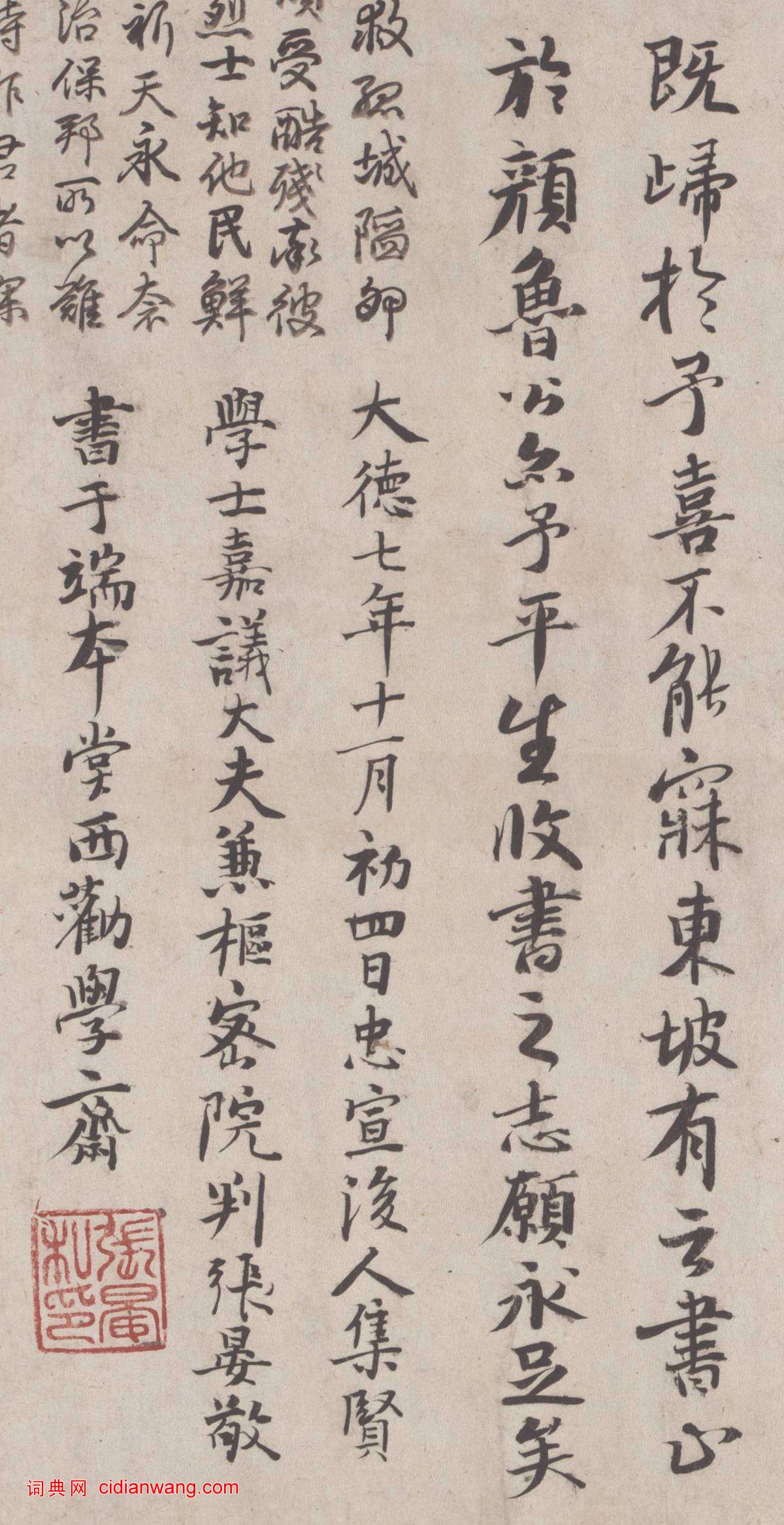 大德七年十一月初四日,忠宣後人、集賢學士、嘉議大夫兼樞密院判張晏敬書於端本堂西勸學齋。