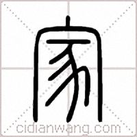 家,居住的地方。字形採用“宀”作邊旁,採用省略了“叚”的“豭”作聲旁。