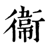 宿衞也。宮正。夕擊?而比之。注。暮行夜以比直宿者。宮伯。掌王宮之士庶子凡在版者。大鄭雲。庶子宿衞之官。後鄭雲。衞王宮者必居四角四中。於徼𠋫便也。漢有衞尉掌宮門衞屯兵。從韋帀行。韋者,圍之省。圍守也。帀,?也。韋亦聲。於歲切。十五部。行,逗。列也。依韻會訂。此釋從行之意。行者,列也。今音讀如杭。別於步趨之行。衞從三字會意。