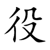 ,這是古文寫法的“役”,採用“人”作邊旁。