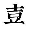 壴,架設擊鼓台,將鼓架立起,上端的裝飾物就可以看見。字形由“屮、豆”會義。所有與壴相關的字,都採用“壴”作邊旁。
