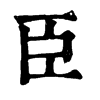 (象形。甲骨文字形,象一隻豎立的眼睛形。人在低頭時,眼睛即處於豎立的位置,字形正表示了俯首屈從之意。本義:男性奴隸)