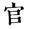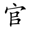(會意。甲骨文字形,從“宀”(mián),以冖覆眾,則有治眾的意思。本義:官吏,官員)
