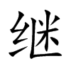 又如:繼繼(前後相繼,接續不斷);繼蹤(繼續前人所做的事);繼踵(步履前後相接。指相傳不絕);繼志(繼續前輩的志意)
