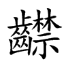 康熙字典說文解字古漢語字典國語詞典廣韻字典近義詞字典網>> 國語字典>>齽的拼音,齽的五筆,齽的解釋 齽拼音:jìn注音:ㄐㄧㄣˋ部首:齒 鄭碼:IOFB四角號碼:24791齽五筆86編碼:hwwi 五筆98編碼:HBSI筆順:豎橫豎橫撇捺撇捺橫撇捺撇捺折豎橫豎撇捺橫豎撇捺橫橫豎撇捺齽倉頡:YUDDF筆劃:共 28 劃齽的Unicode:U+9F7D齽的釋義齽 jìn 向內彎的牙齒。 古同“噤”。 筆畫數:28; 部首:齒; 筆順編號:2121343413434521234123411234 齽的同音字津 今 縉 侭 廑 襟 儘 藎 進 晉 厪 燼 黅 勁 溍 齽相關字典齽康熙字典齽廣韻齽的相關詞語齽齘