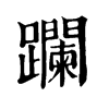 康熙字典說文解字古漢語字典國語詞典廣韻字典近義詞字典網>> 國語字典>>躝的拼音,躝的五筆,躝的解釋 躝拼音:lán注音:ㄌㄢˊ筆劃:共 24 劃 倉頡:RMANW鄭碼:JIFL躝的五筆86編碼:khui五筆98編碼:KHULUnicode:U+8E9D躝的筆順:豎折橫豎橫豎橫折橫橫豎豎折橫橫橫豎折捺撇橫豎撇捺四角號碼:67120部首:足 躝的解釋躝 lán 越過。 筆畫數:24; 部首:足; 筆順編號:251212151122511125431234 躝的同音字韊 婪 攬 爁 爦 覽 儖 譋 爛 鑭 灆 蘭 繿 欗 欖 躝相關字典躝康熙字典躝廣韻躝的相關詞語躝躒