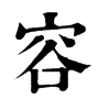 相貌,儀表,景象,狀態:容止。容顏。容光。容貌。儀容。軍容。市容。陣容。姿容。