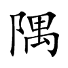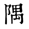 隅部首:阝隅 讀音為:雙耳旁兒(shuāng'ěrpángér) 雙耳刀兒(shuāng'ěrdāoér) 左(右)耳刀兒(zuǒ'ěrdāoér)筆劃:共 11 劃 鄭碼:YKLZ