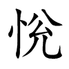 康熙字典說文解字古漢語字典國語詞典廣韻字典近義詞字典網>> 國語字典>>恱的拼音,恱的五筆,恱的解釋 恱拼音:yuè注音:ㄩㄝˋ 筆劃:共 9 劃恱的Unicode:U+6071部首:忄 讀音為:豎心旁兒(shùxīnpángér)恱的鄭碼:UOZR恱五筆86編碼:nwcq恱五筆98編碼:NWCQ筆順:捺捺豎撇捺折捺撇折 四角號碼:98012恱倉頡:PCIU恱字的基本意思恱 yuè 古同“悅”。 筆畫數:9; 部首:忄; 筆順編號:442345435 恱的同音字粵 蘥 禴 岳 瀹 鑰 曰 粵 爚 刖 嶽 蚏 岄 矱 捳 恱相關字典恱康熙字典